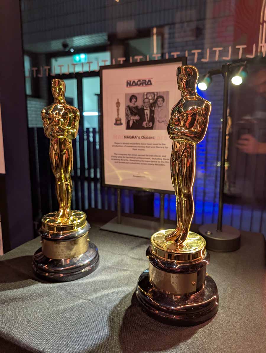 After the usual mingling with the members of the press we were invited to check out a little “museum of Nagra” showcase where they had 2 out of 3 Oscar awards the brand have been awarded over the years, alongside 2 vintage recorders.