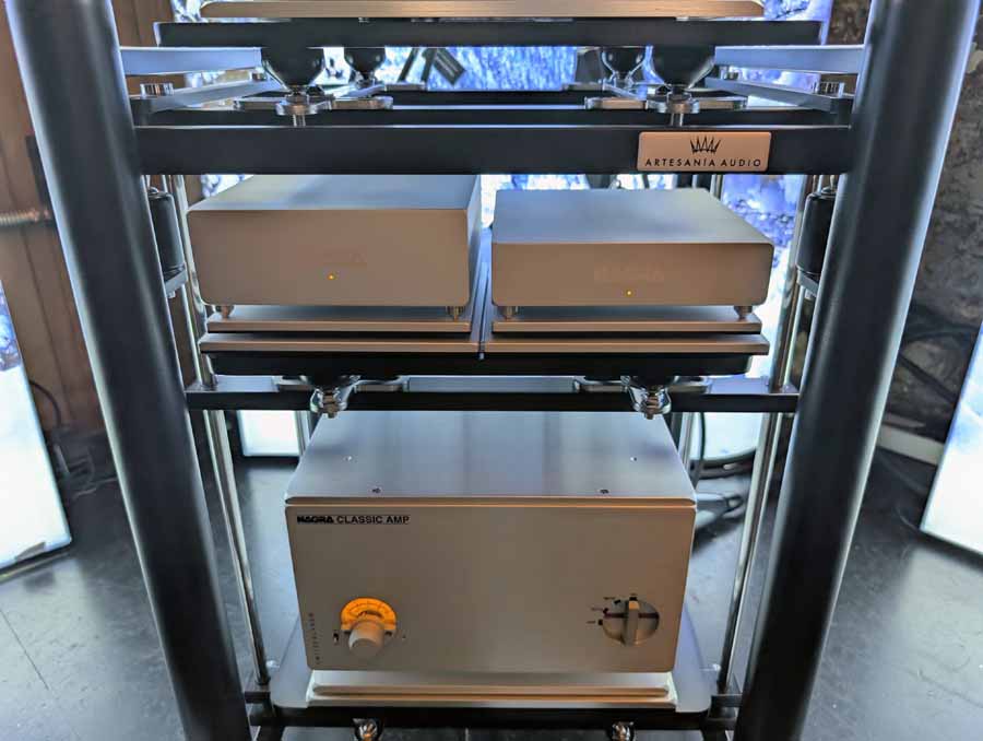 In the main room, they had the Nagra HD pre-amp on display, alongside some Audeze for Nagra headphones, and a main demo setup using the new Compact Player and matching power supply, Classic Amp, and a prototype of their new Classic Preamp II-S, which is releasing next year. All of this was running into a pair of DeVore Fidelity O/Bronze loudspeakers.