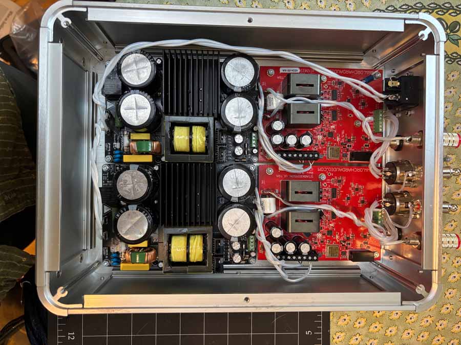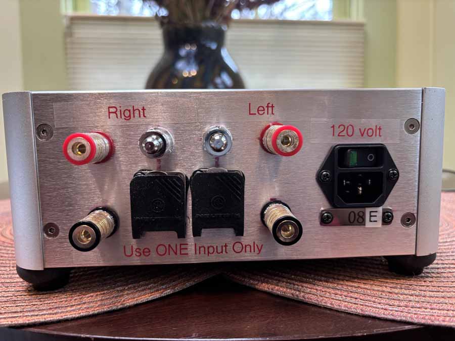 Ernest did tell me not to plug things in or out when the unit is switched on, and I always agree with that philosophy. The Switched Mode Power Supply does have soft-start and overload protection, as does the GaN-FET module, but Ernie told me not to connect both RCA and XLRs at the same time as “mysterious things might happen…. and they won’t be musical!” The company always caution users to de-power the amps before switching speakers, just as a precaution against momentary shutdown. I didn’t want to explore that possibility and complied.