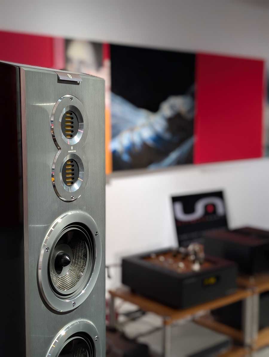 Speakers: Avantgarde Trio G3 iTron in Galactic Glow colour + compact Twin Subs