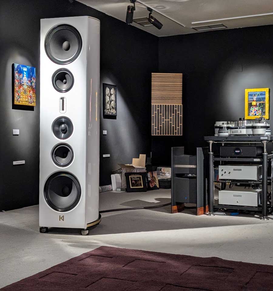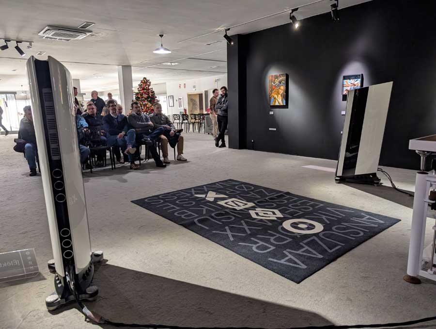 When it came to designing the festival, Ignacio was clear on one thing: the acoustic treatment that HiFi shows often rely on would ruin the visual environment (and this was echoed in the time, effort and money he invested in his home listening room). The art came first. Treatment on walls and ceilings would have ruined the interior design and disrupted the graphic and sculptural work on display. So with the help of some experienced figures in the audio industry, he opted for careful loudspeaker placement instead of acoustic sticking plasters. In the cavernous spaces (I’d love to put a party on here), when the venue was sparsely populated with visitors, the sound wasn’t what I would call ‘world-class’, but when it filled up with people, it improved a whole lot more. Looking at the audience (a very diverse mix of ages and genders), there wasn’t that usual chin stroking audiophile thing going on; people sat and truly got into the music, whether that was the whole of Shine On You Crazy Diamond on the WADAX/Avantgarde system, King Of Sweden by Floating Islands on the Kroma Atelier fronted system, the Doors Roadhouse Blues covered by Deep Purple on the Audio Group Denmark system, or the Crazy Frog song (there were a good few younger kids here) on the Kroma system.