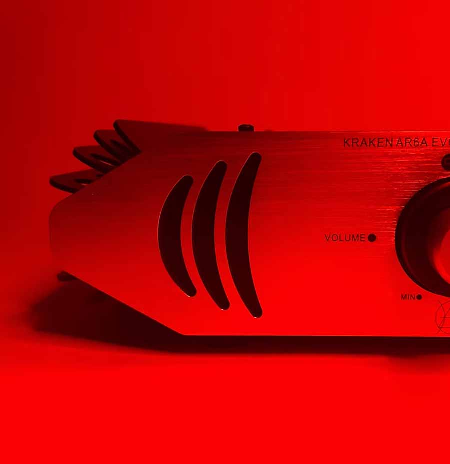 Audio Resurgence say the new Kraken Evolution AR6A retains its original circuit design, but a significantly evolved heatsink profile has allowed it to gain more class A performance. The concentric volume and selector keeps the input signal tracks as short as possible. It is still available with a choice of single or upgraded double external power supplies and a a plug in phono module if required.