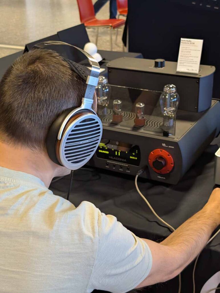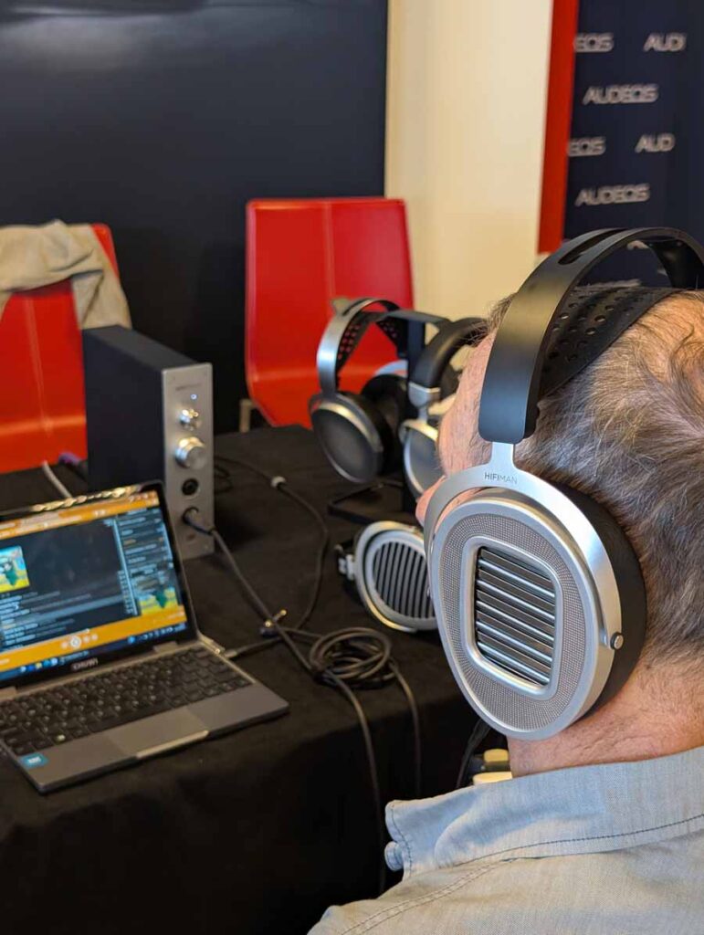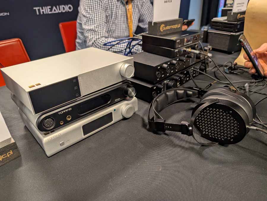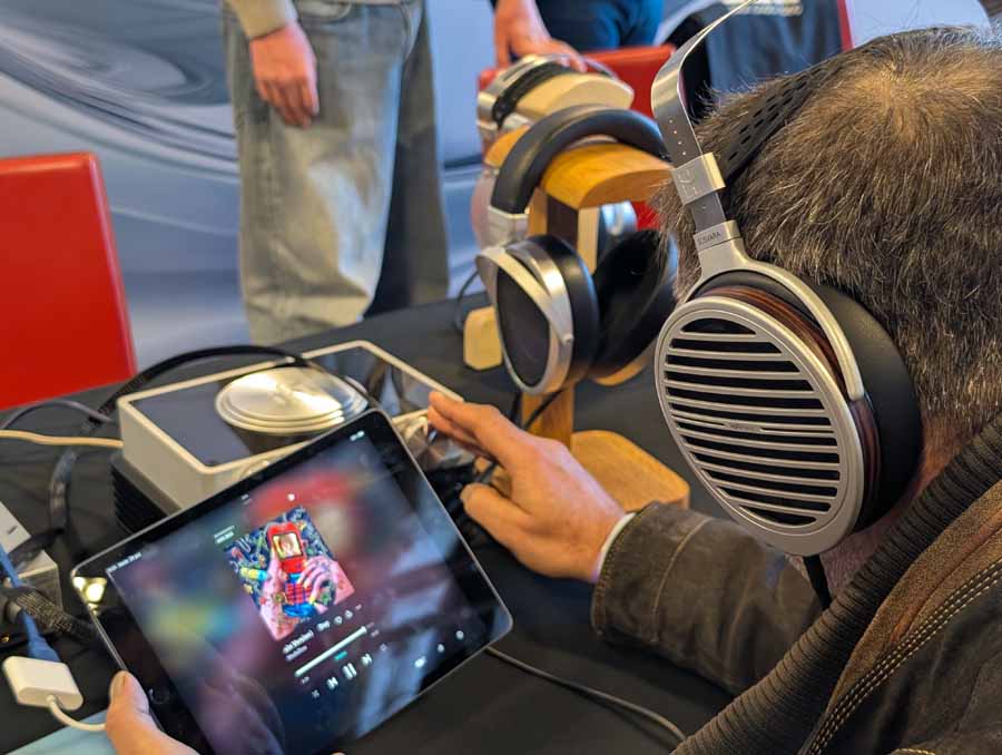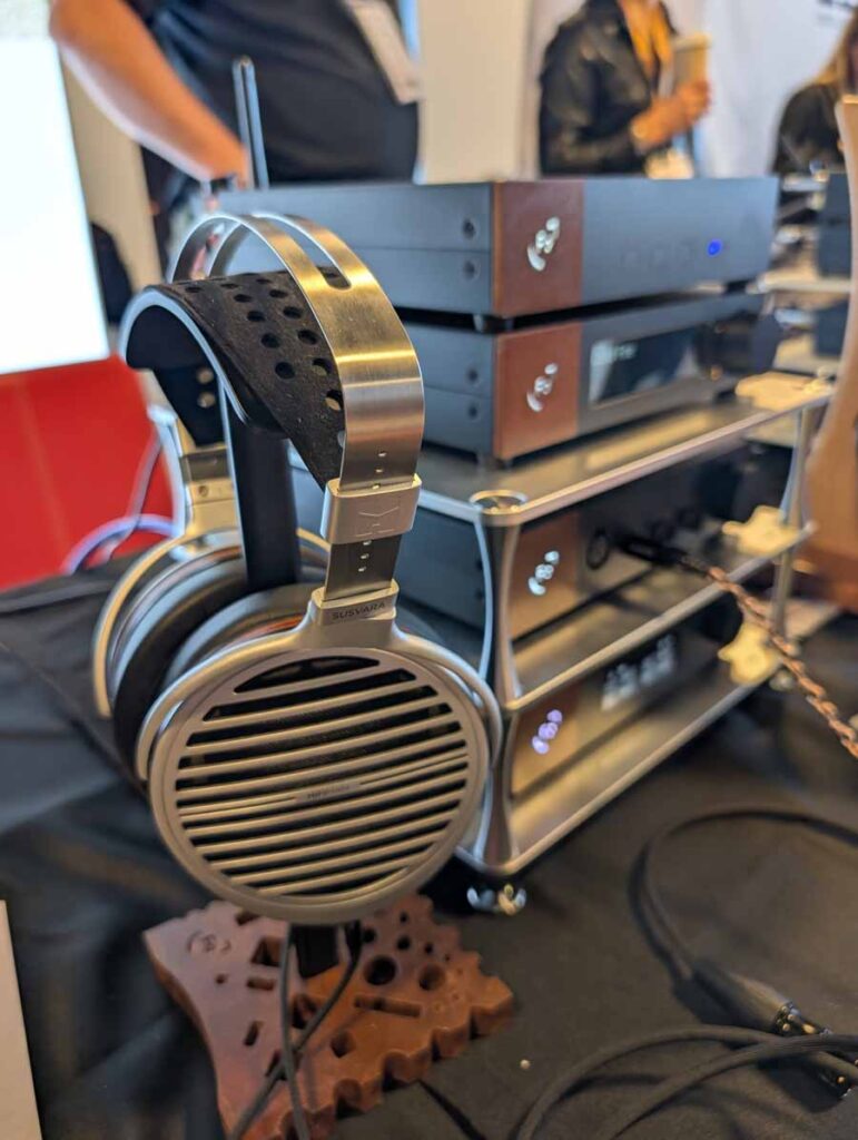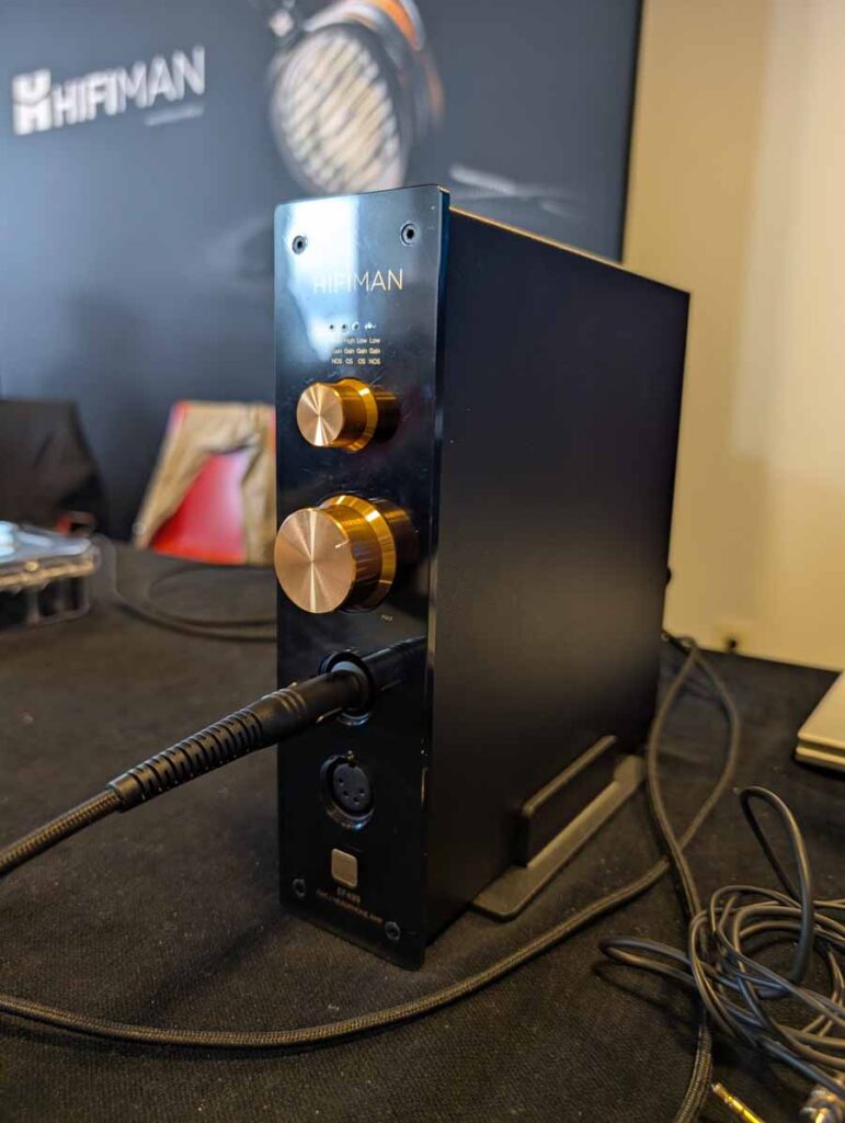 HiFiMAN had their usual models on display, including the Arya Organic, Ananda, and also their newer models the Edition XV, Ananda Unveiled, and HE600 – the latter being extremely energetic and punchy and a throwback to HiFiMAN tunings of old. They also had a range of DAC/amps on their table to use with their headphones. There was also a wider range of the high-end offerings from HiFiMAN spread out across the Headphone Zone.