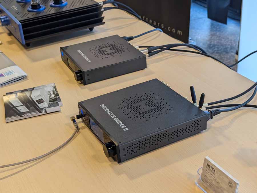 Mytek had a pair of Stax headphones paired with the excellent Blue Hawaii, along with their Manhattan II, Brooklyn Bridge II and Brooklyn DAC+.