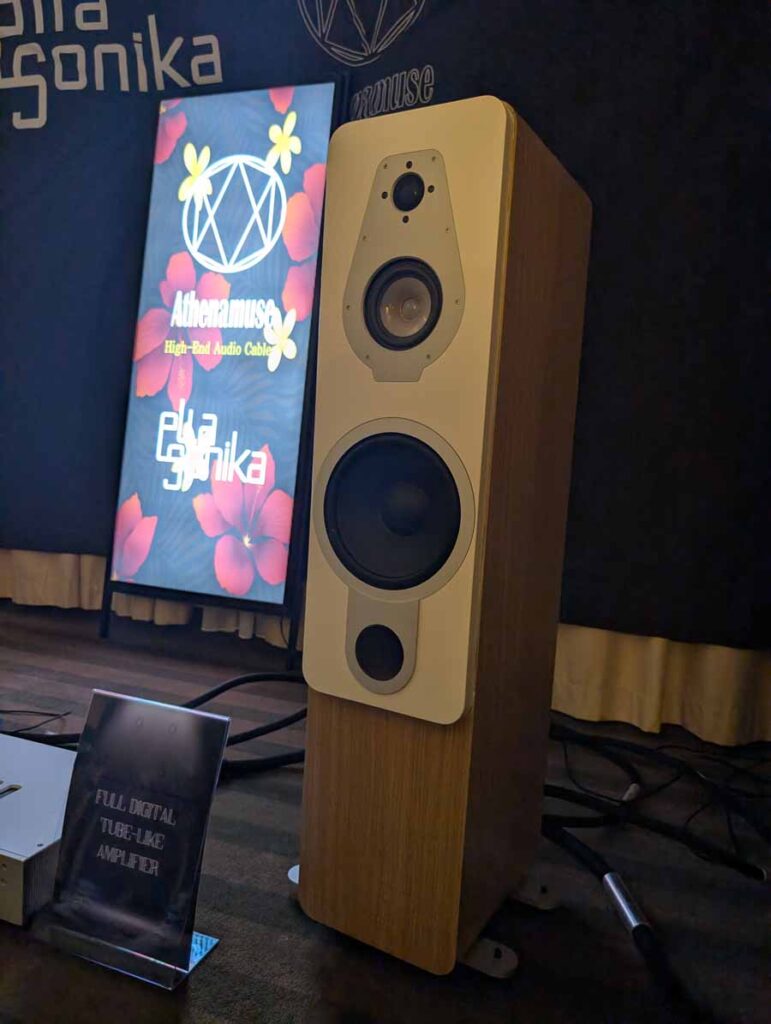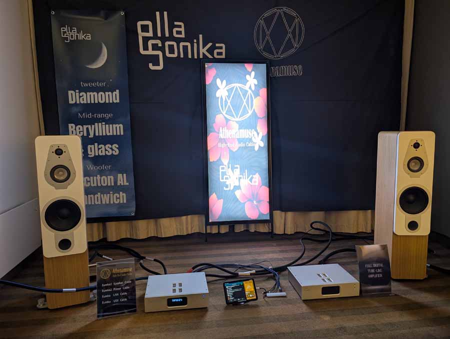 In this room were a different pair of Ellasonica speakers, paired once again with Ellasonica amplifiers and Athenamuse cables (Eureka2 series). The speakers use a glass midrange driver which is a little different. They sounded great, even handed yet a little more “fun” than the previous Ellasonica ones, with a little added sweetness that makes them a little more engaging.