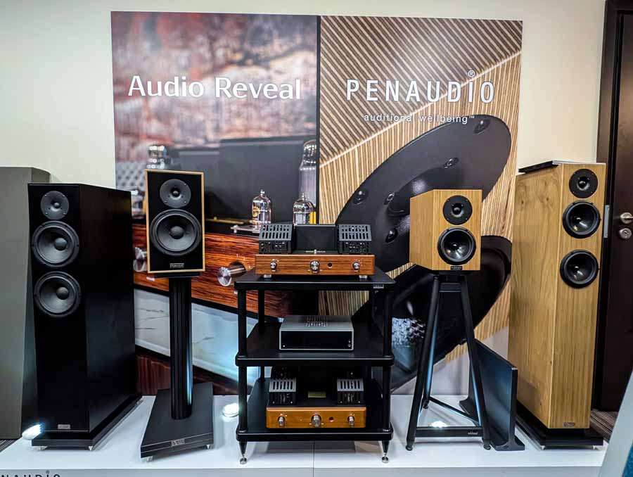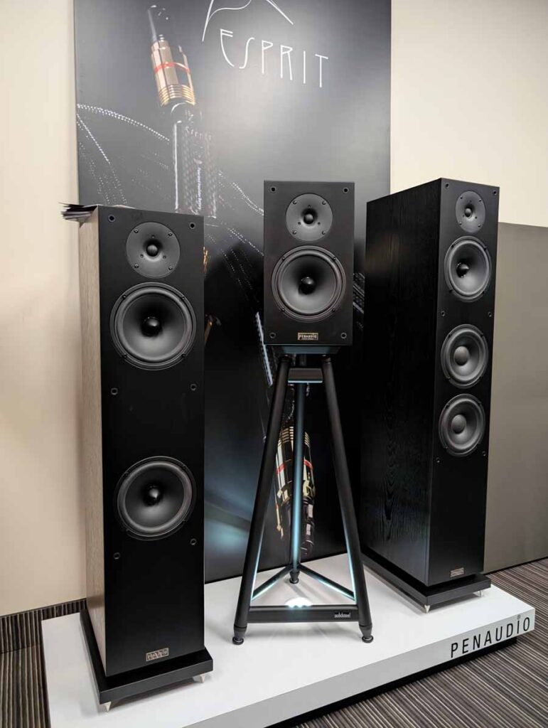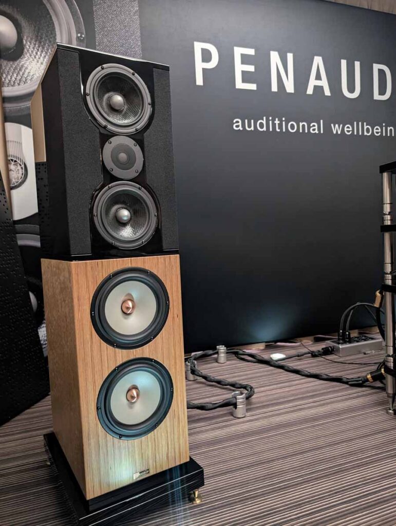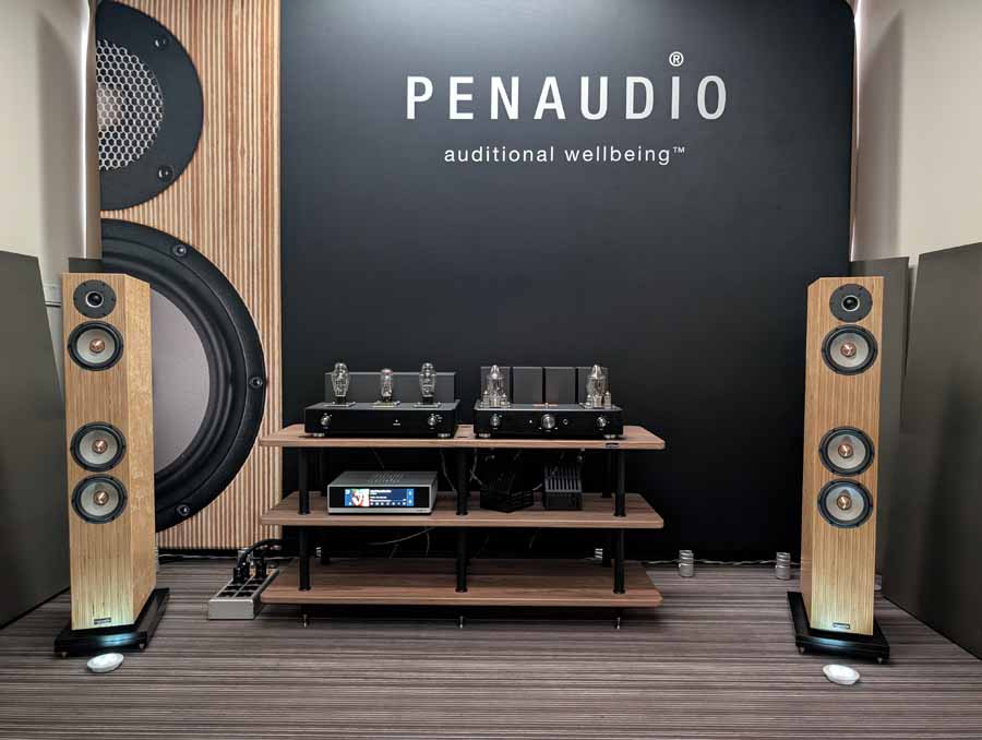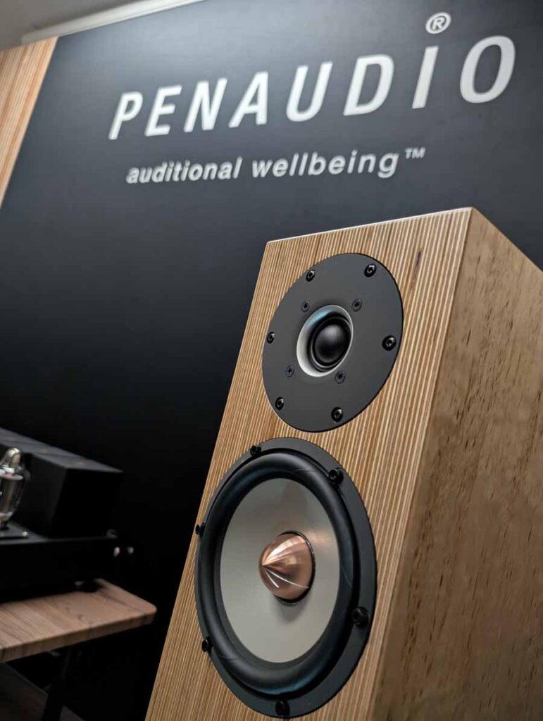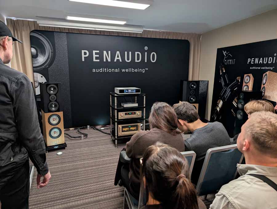 In the next room we had the debut of Penaudio’s Rebel Three Luumaki speakers paired with a tube amp from Audio Reveal, Matrix Audio streaming transport, cables from Esprit, and stands from SolidSteel. Whilst not quite as impressive as the big room, these held their own as a highly enjoyable, fuller sounding speaker.