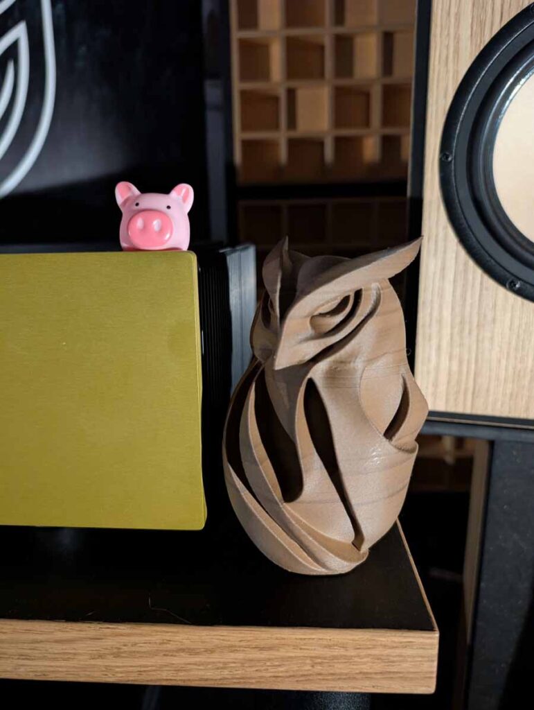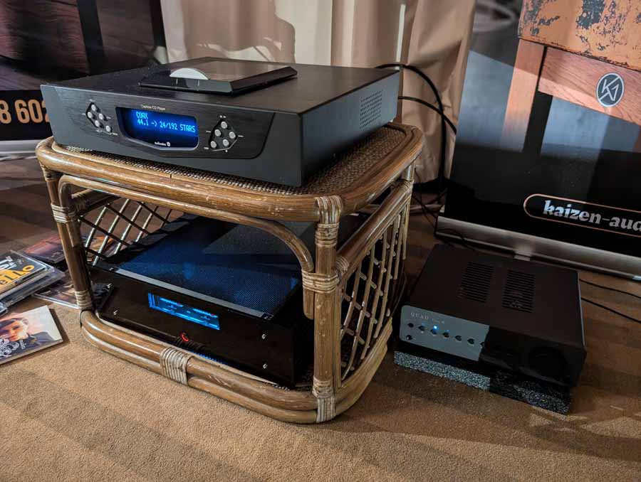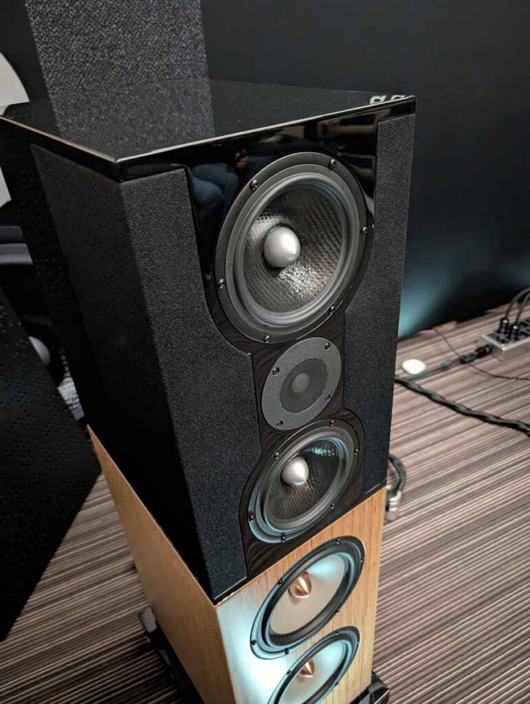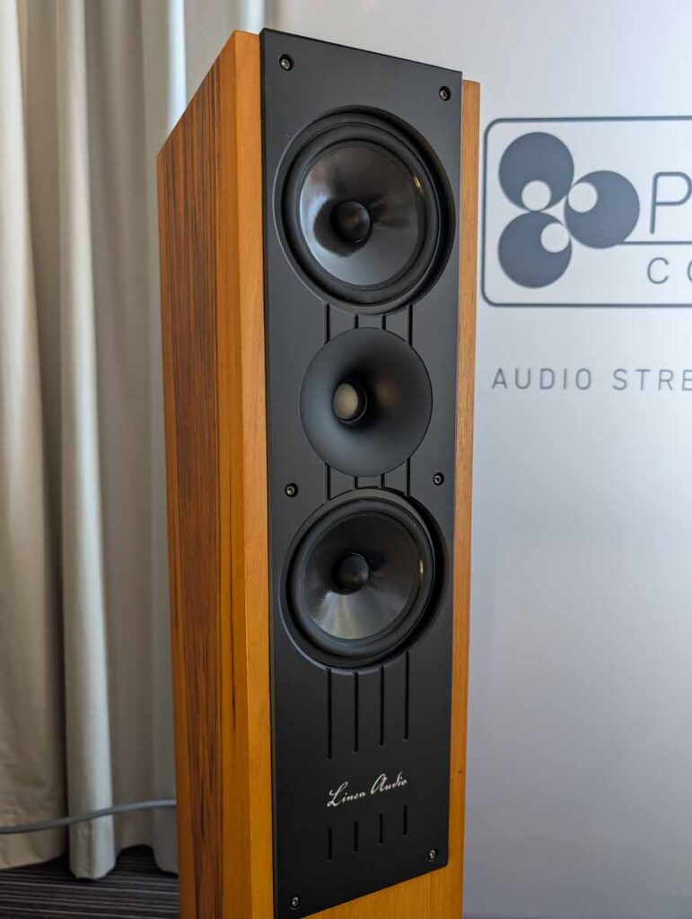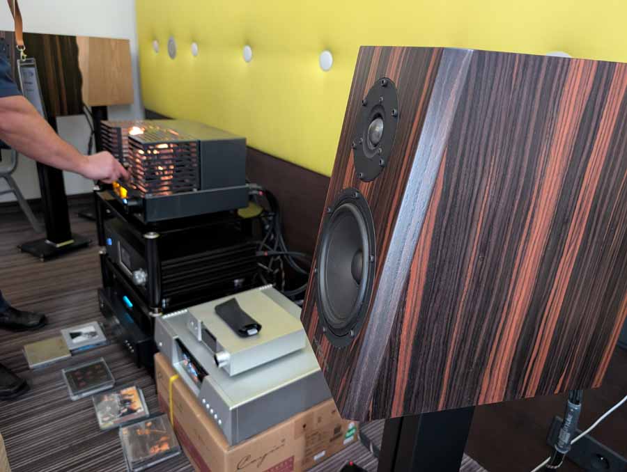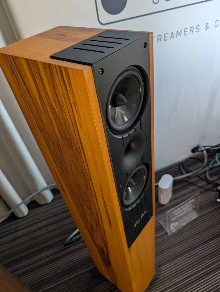 In the next room we had the debut of Penaudio’s Rebel Three Luumaki speakers paired with a tube amp from Audio Reveal, Matrix Audio streaming transport, cables from Esprit, and stands from SolidSteel. Whilst not quite as impressive as the big room, these held their own as a highly enjoyable, fuller sounding speaker.