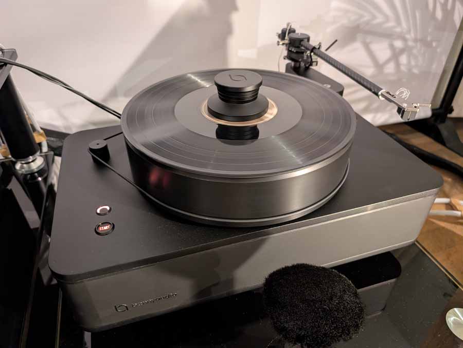 In the second system they had the new Aavik 588 series phono stage, SD-588 streamer, I-588 amplifier, and Borresen T1 stand mount speakers paired with the new Borresen A3 Bass Modules (these are fantastic). The new 588 phono stage has a DS Audio optical cartridge input, and they were using this in the system. So, the footprint of this system may be similar to a larger floor stander, however this is an astonishingly good system that outperforms many floor standing systems in my humble opinion. The sheer scale and drive that this setup has is incredible, the bass modules are not simple subs, they are an extension of the speaker themselves and blend so seamlessly. The sound here was coherent, with effortless extension from top to bottom, and the bass modules have such good timing, never lagging behind the stand mount speakers.