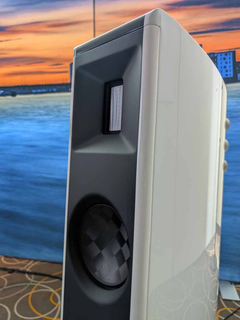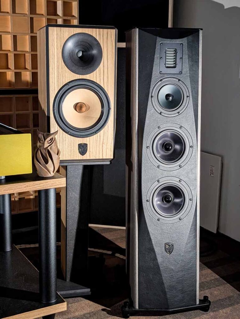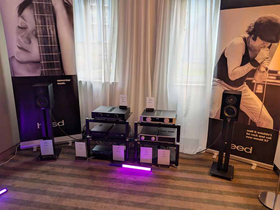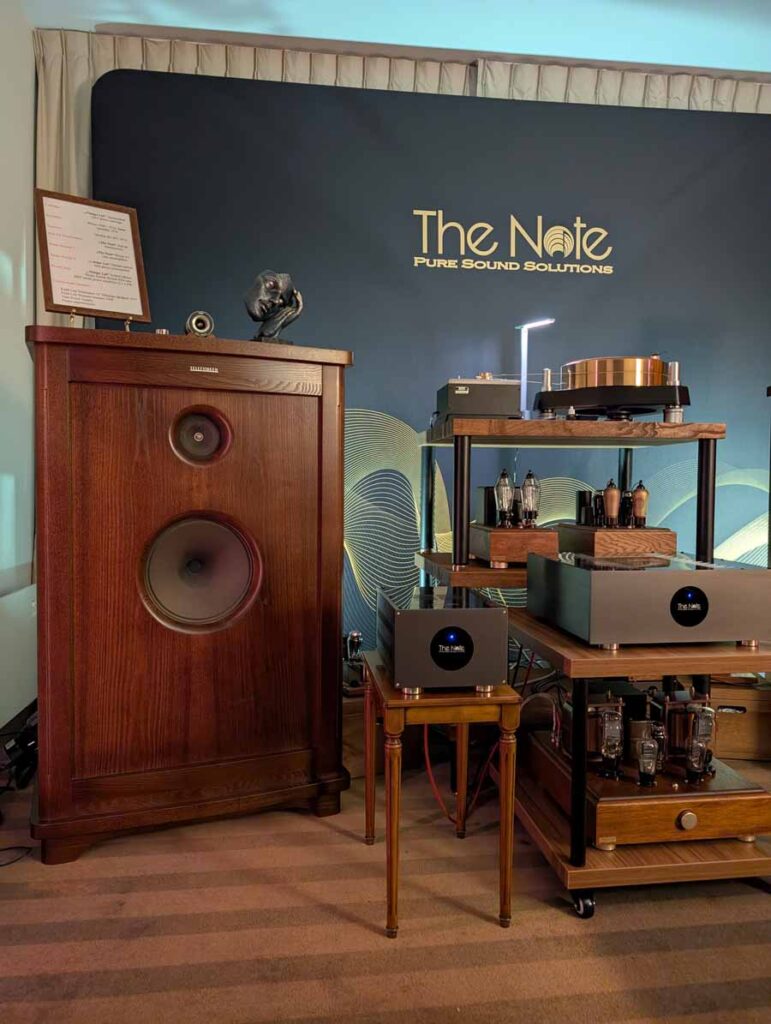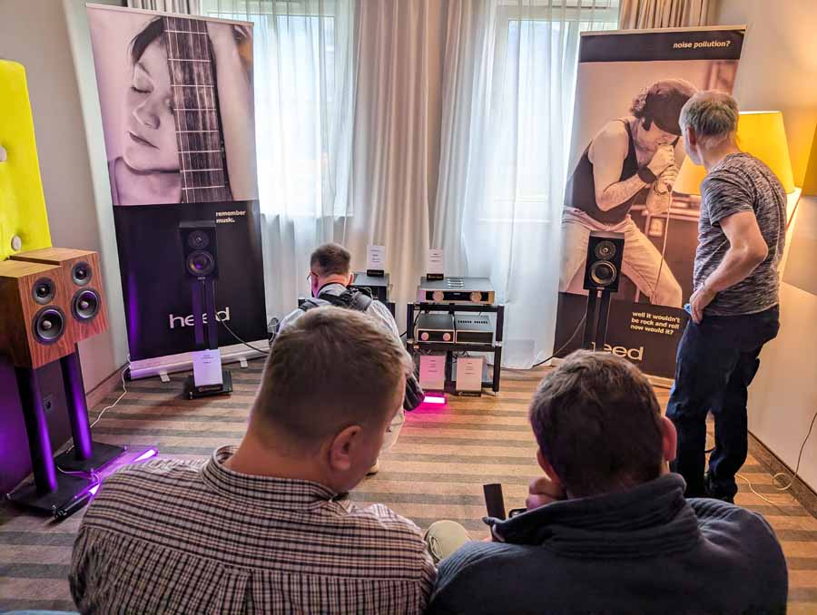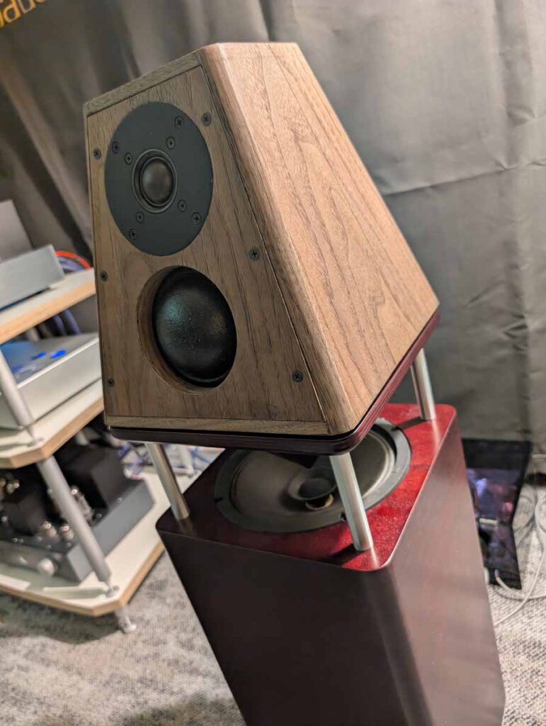 Audiomagic distributes quite a few well-known brands, in this room they had a full HEED setup with the Obelisk Integrated, Lagrange S, Abacus S, and Volumio Rivo+ streamer, running into a pair of Dorn Acoustics (a sister brand of HEED) Herald speakers. They were playing Tool in this room, a great palate cleanser for me, and it was fantastic. These small speakers handle rock music very well, with great imaging, energy, and dynamics.