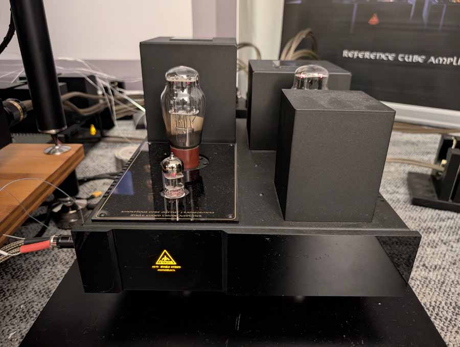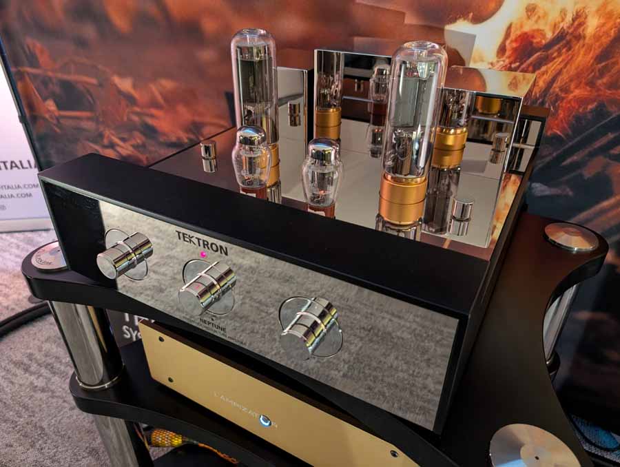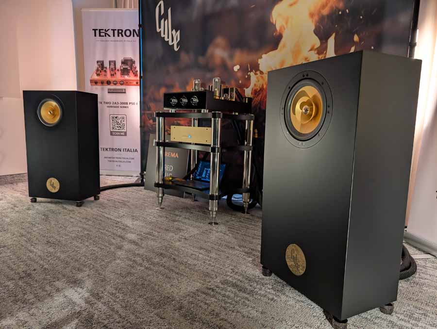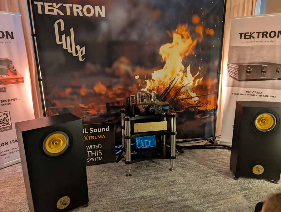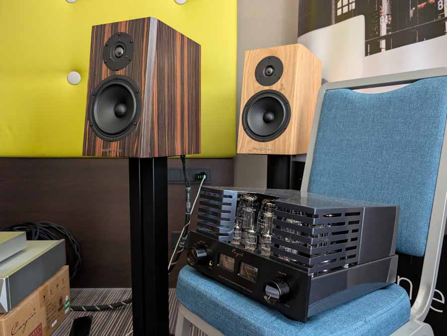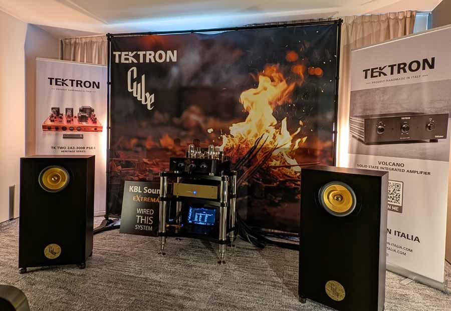 Cube had their new Monet speakers in this room; they were paired with a Tektron SET amplifier. An easy-going speaker, they were using IsoAcoustics feet and these speakers sounded nice and natural.