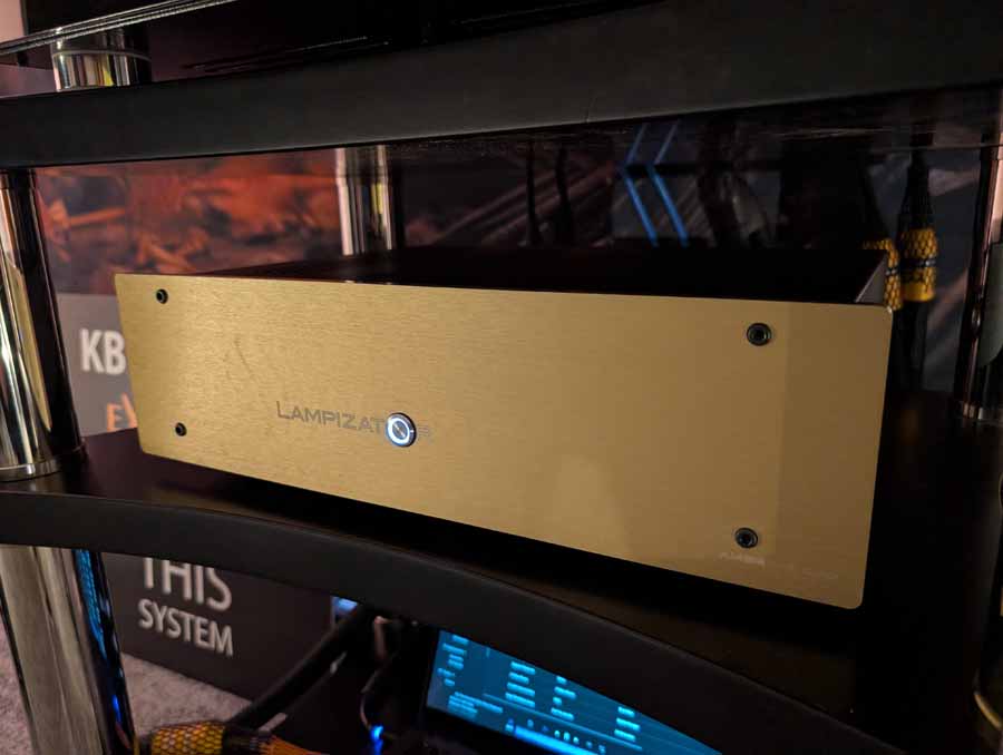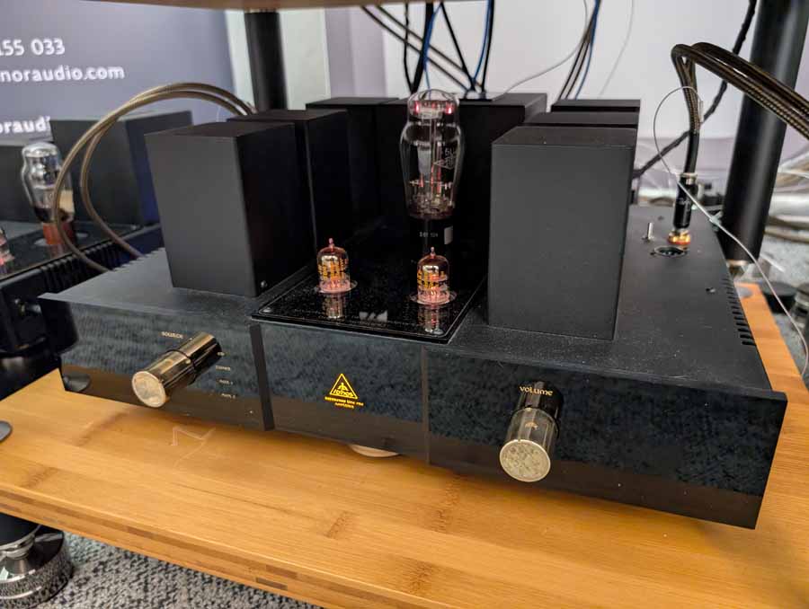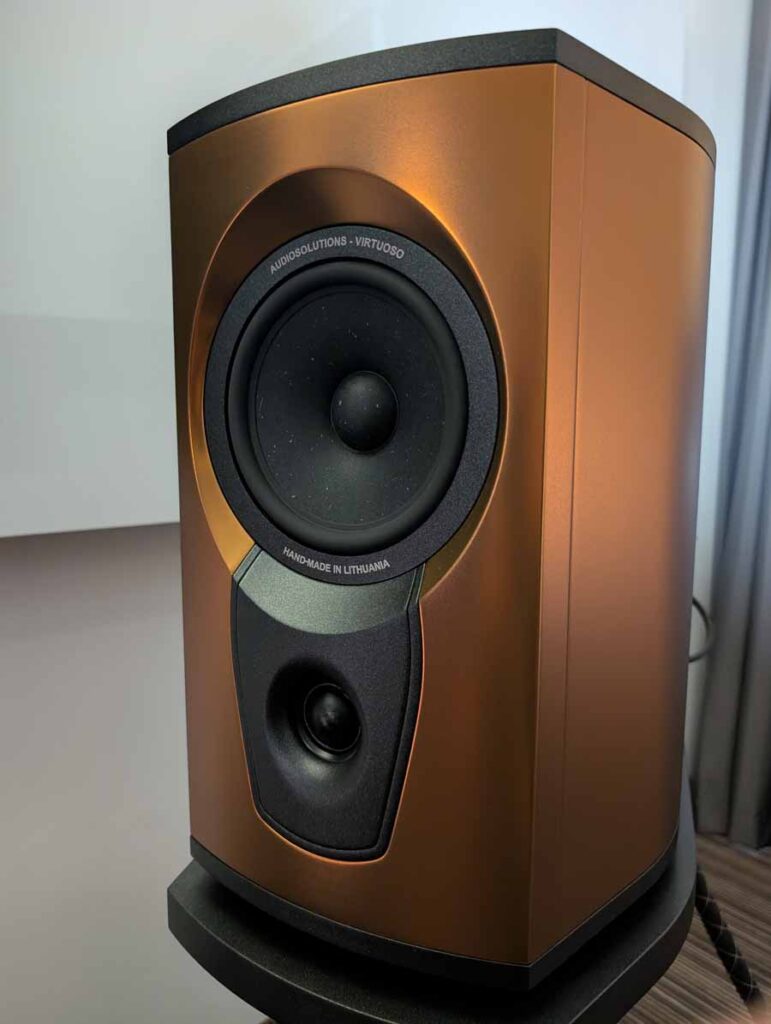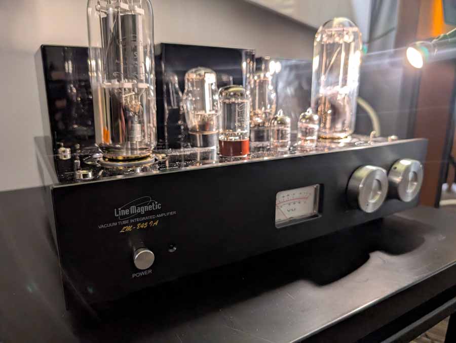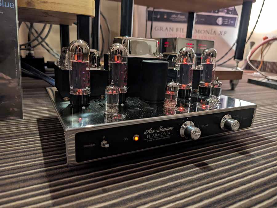 Line Magnetic and Lab12 tube amps with Psvane tubes partnered with AudioSolutions Virtuosos speakers in this demo room, a great pairing. Massive Attack’s Angel sounded excellent with plenty of deep, pulsating bass and clarity when the vocals kick in.