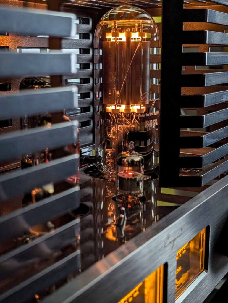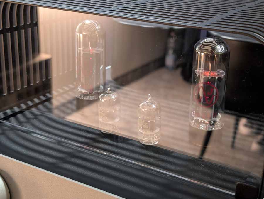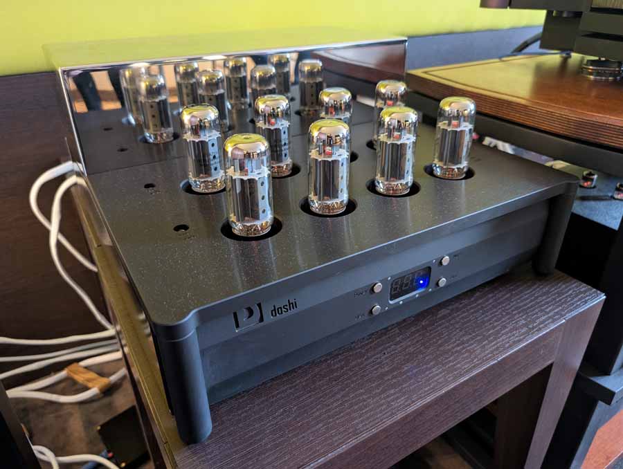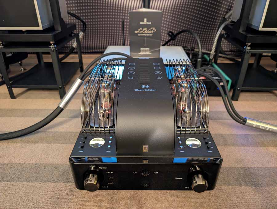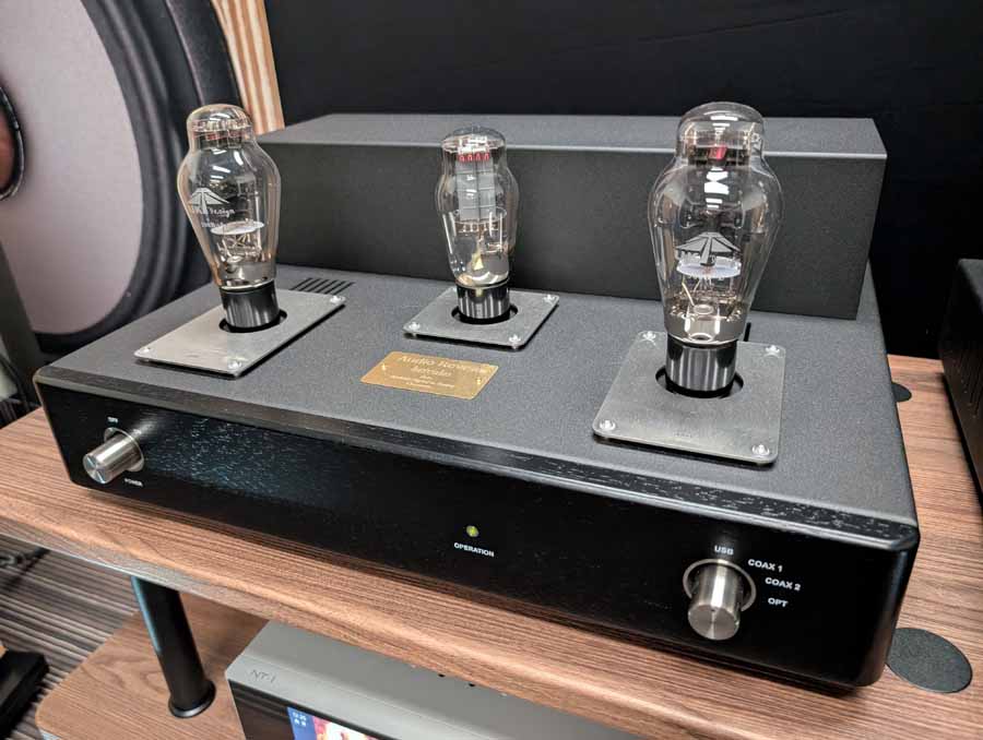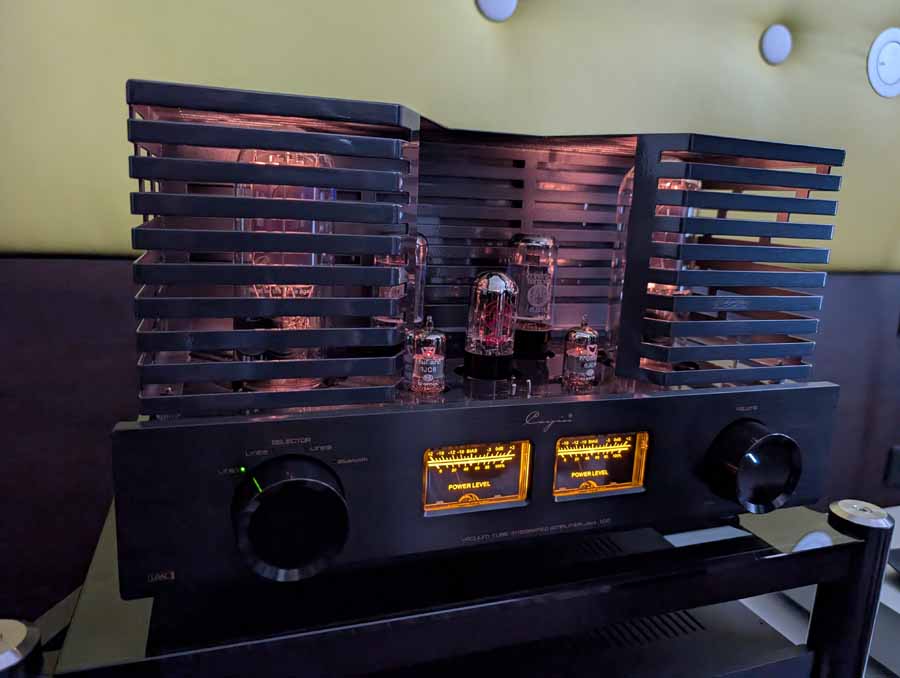 Line Magnetic and Lab12 tube amps with Psvane tubes partnered with AudioSolutions Virtuosos speakers in this demo room, a great pairing. Massive Attack’s Angel sounded excellent with plenty of deep, pulsating bass and clarity when the vocals kick in.