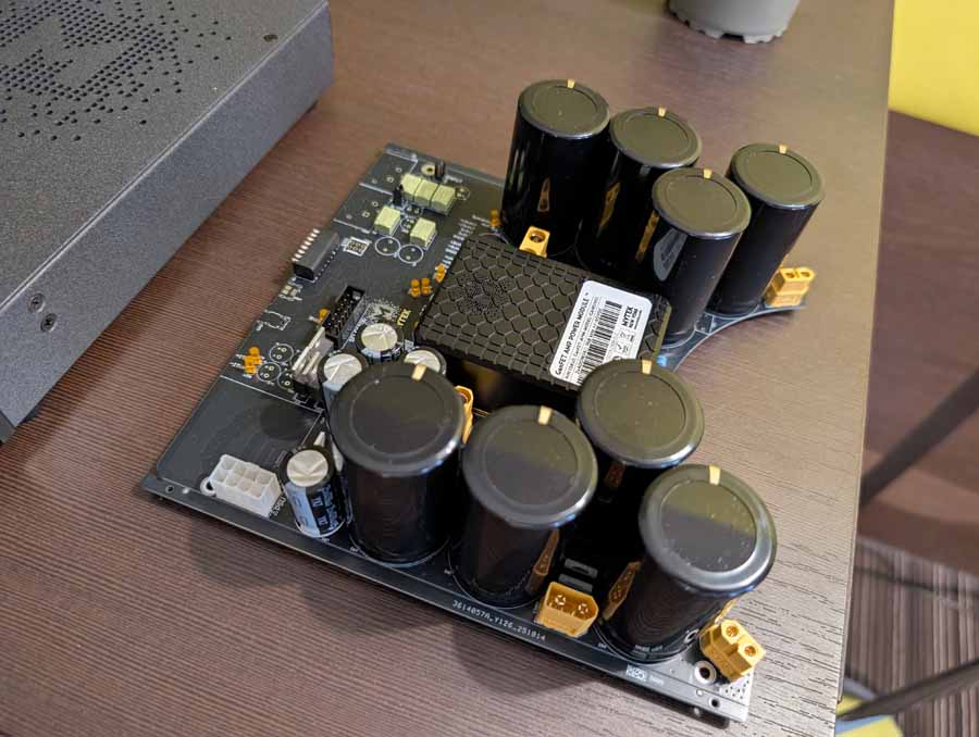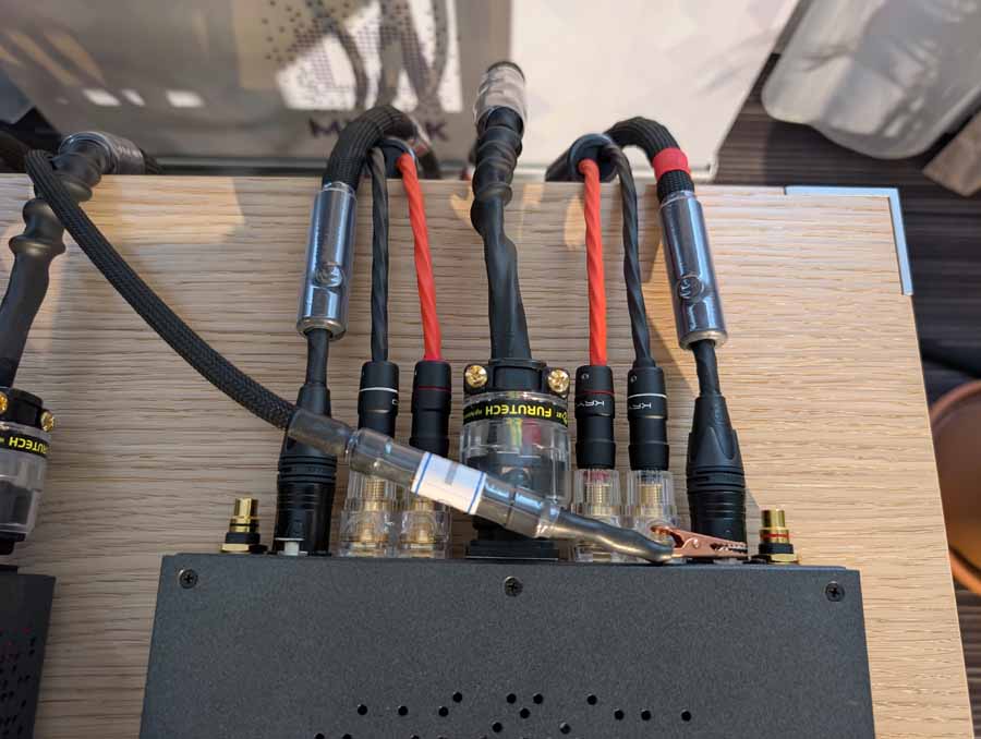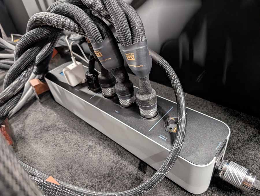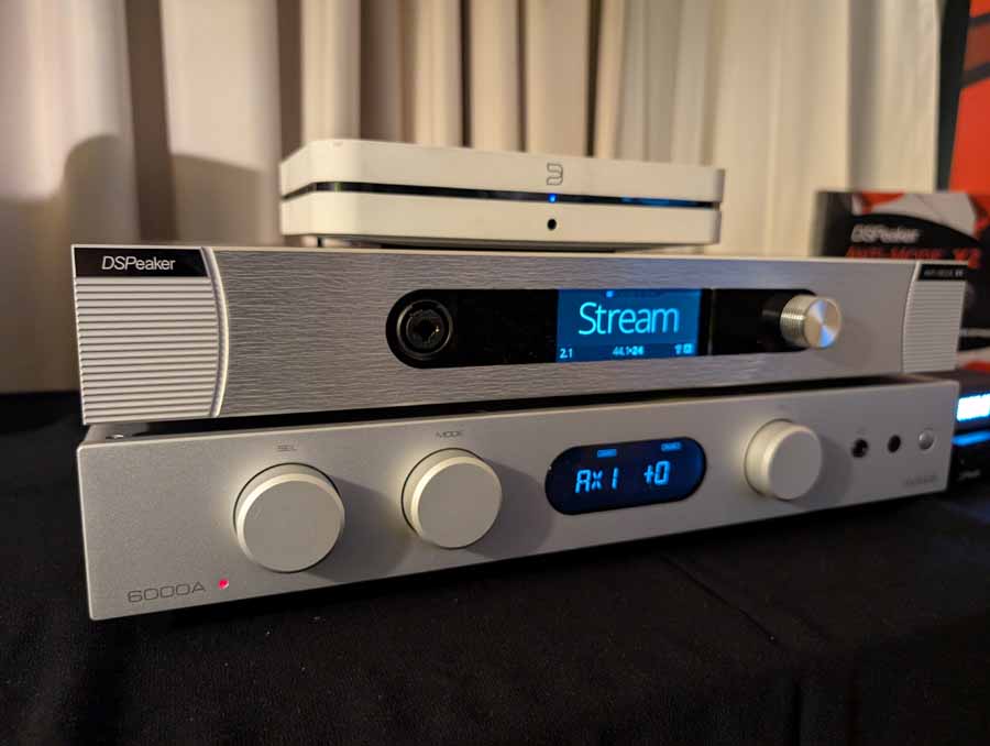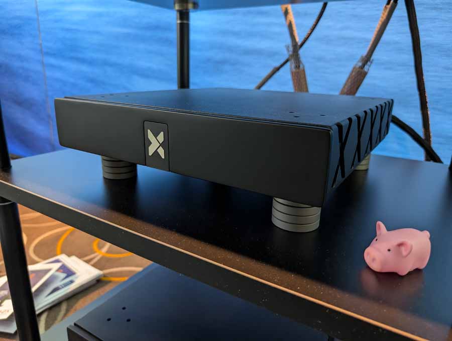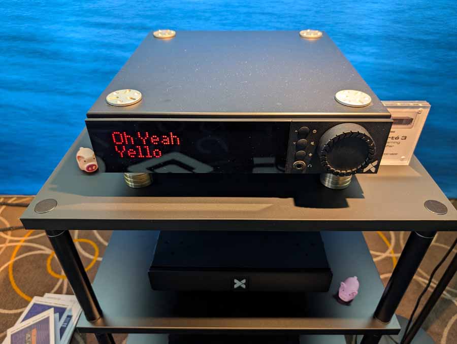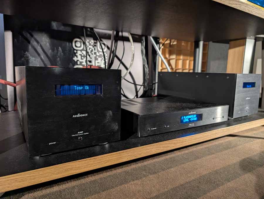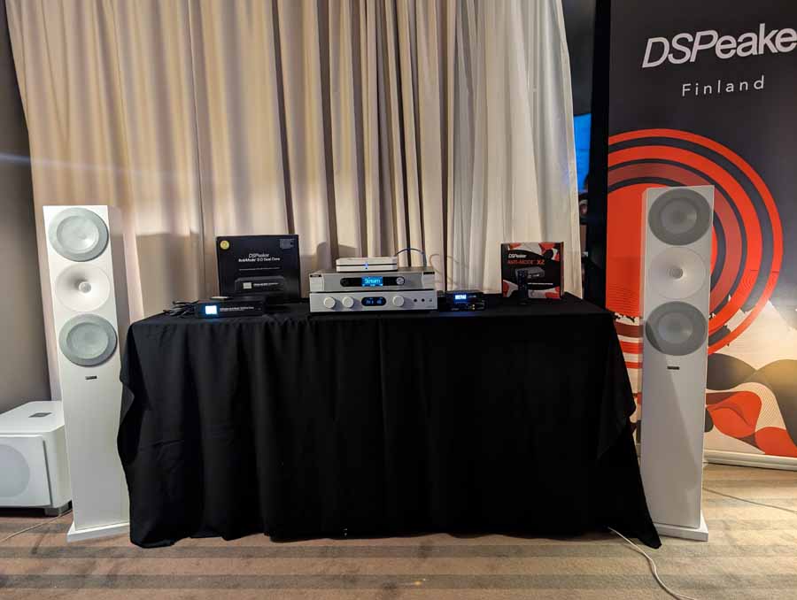 Anti-mode room correction in various forms, in this room they had it paired with a pair of Amphion speakers and a REL sub in the corner. This kind of DSP is brilliant if you have a somewhat tricky room and want to seamless integrate a sub or just level out the speakers. They did a demo with it on and off, and it really does flatten out the response and get rid of the worst of the room modes without ruining the voicing of the speakers.