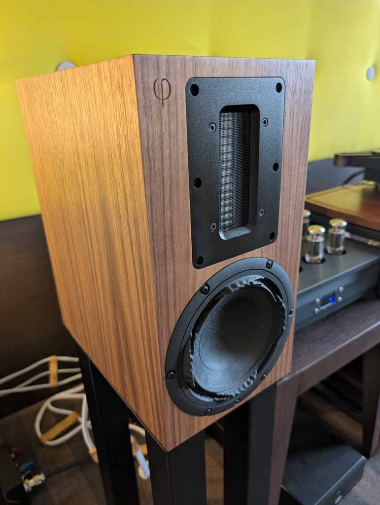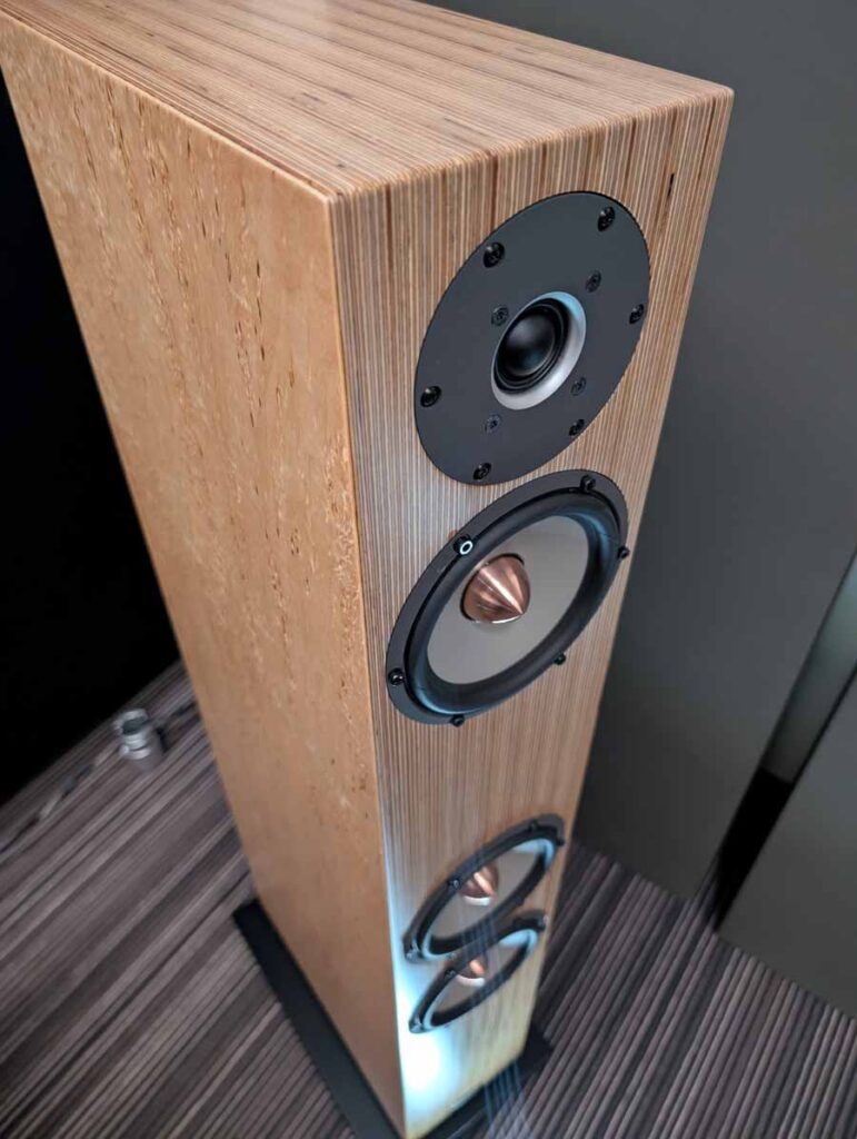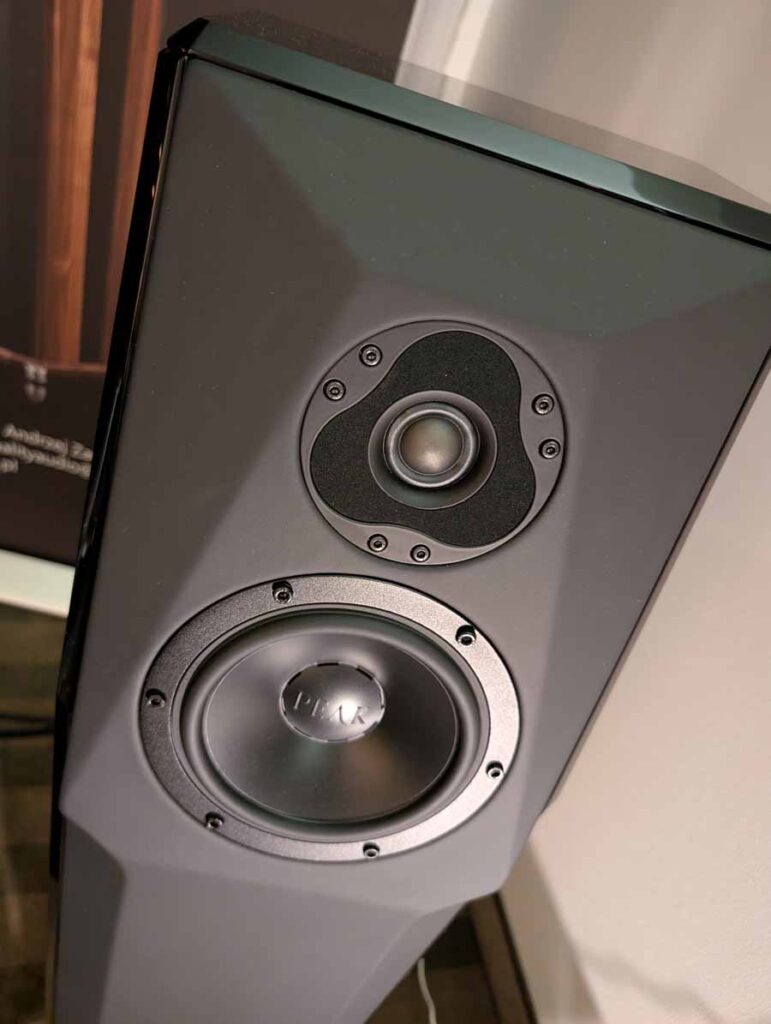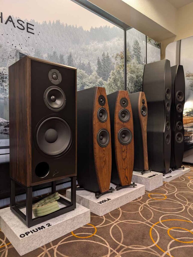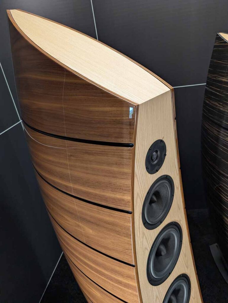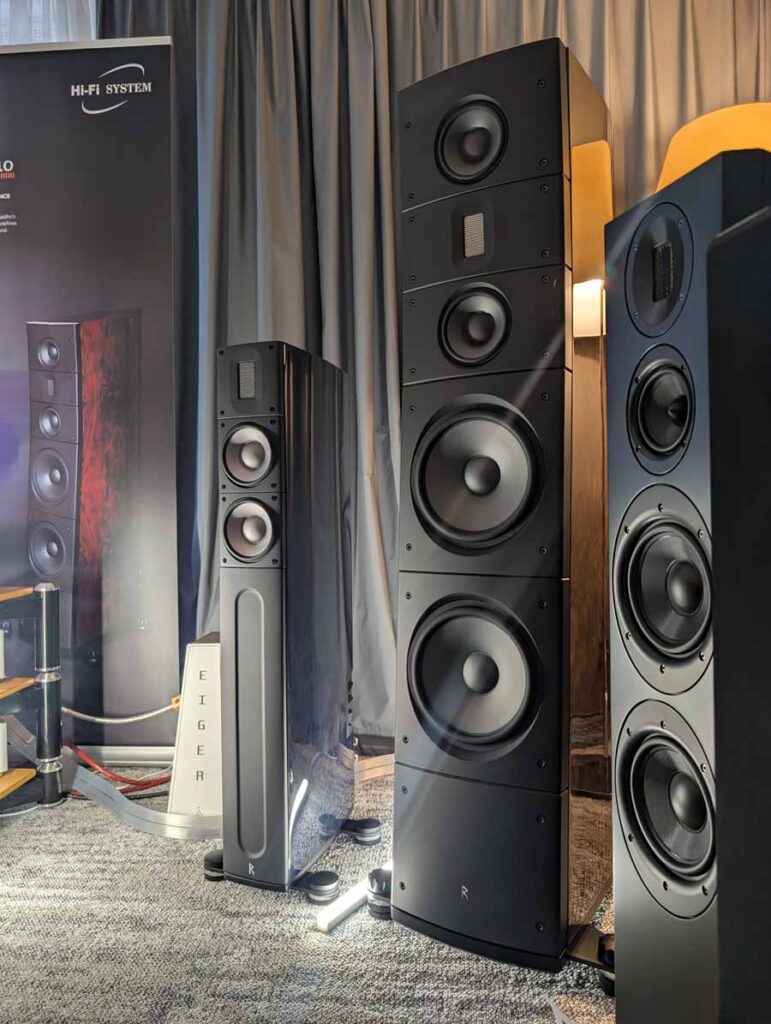 OePhi had their Immanece 2, paired with the excellent Evolution line from Doshi, including the Line pre-amplifier and Stereo power amplifier and a Tentogra turntable. These speakers have quite a large ribbon for the mid/high and use custom purify ushindi drivers. These are fantastic, great depth to the soundstage and impressive dynamics. These sound big, and the clarity on display here was truly superb – these can be cranked to deafening volumes without falling apart and have super low distortion.