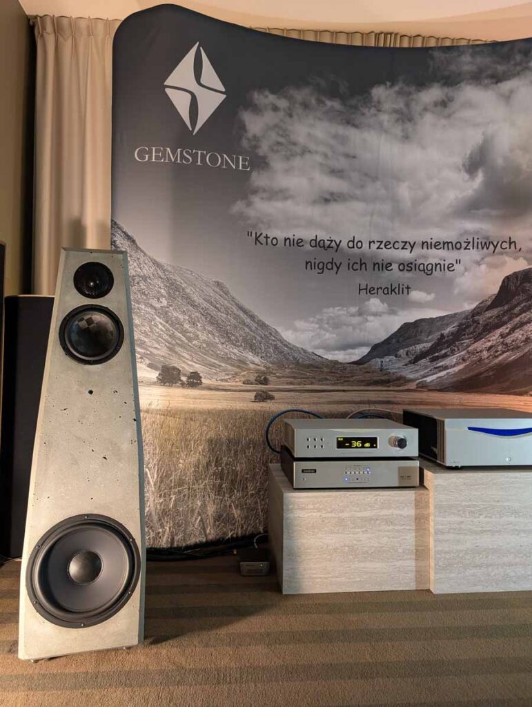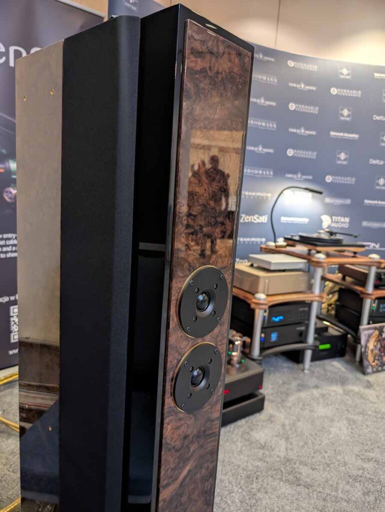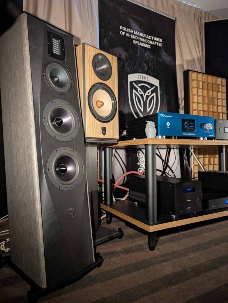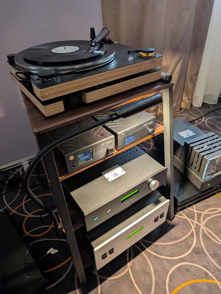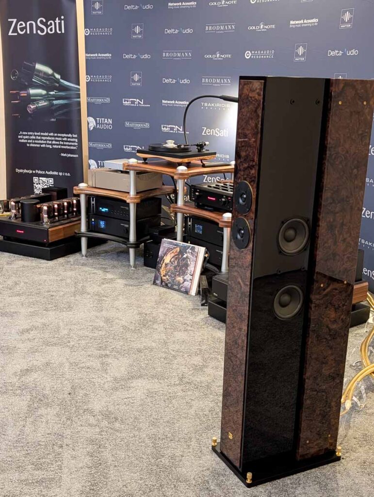 MuzgAUDIO unveiled two new DACs at the show, this is a company who make all their own designs and the whole system in this room was made up of components made in Poland. Linea Audio make a range of speakers, and the slim floor standers from Linea Audio were playing in here. They sounded excellent – quite a well-balanced sound with accurate tonality and controlled yet deep bass. Linea are making some great speakers, so I’ll be curious to see what comes next.