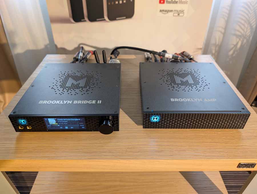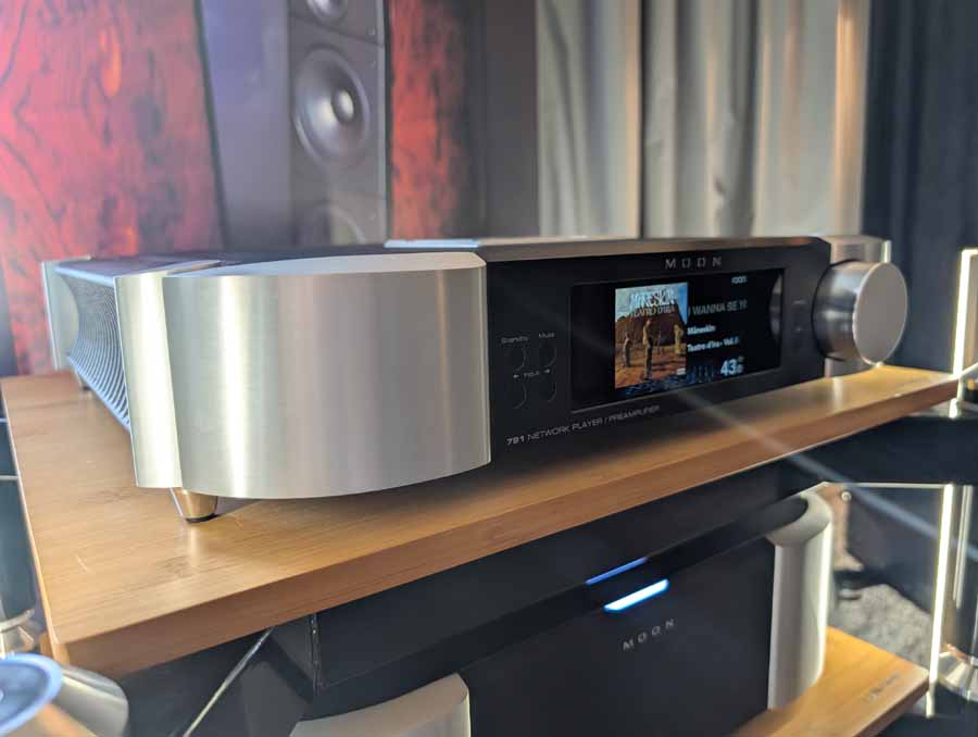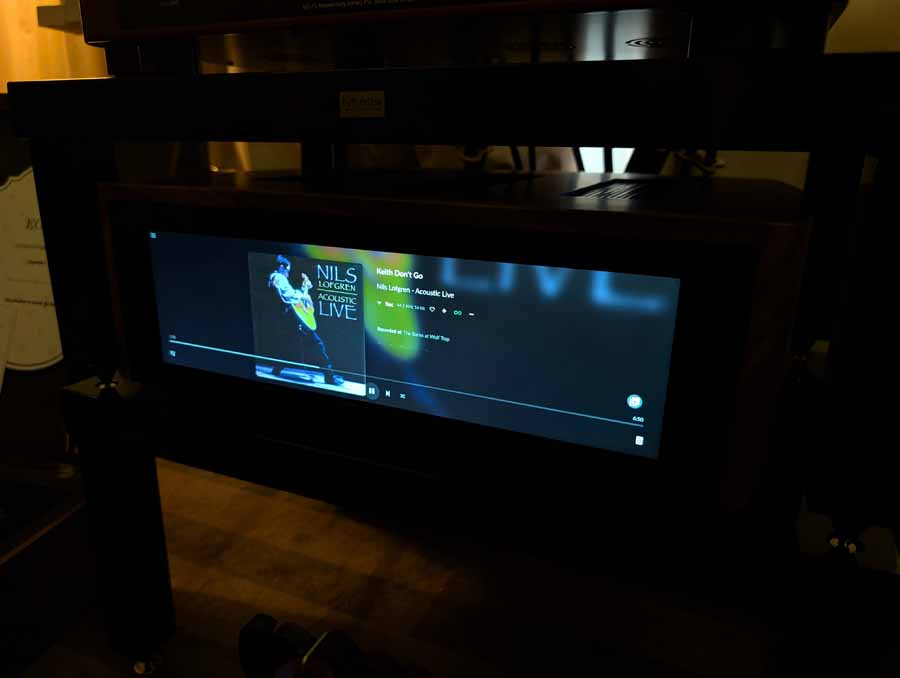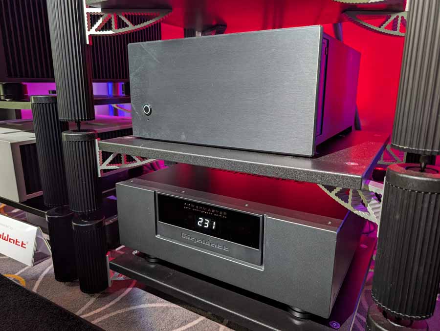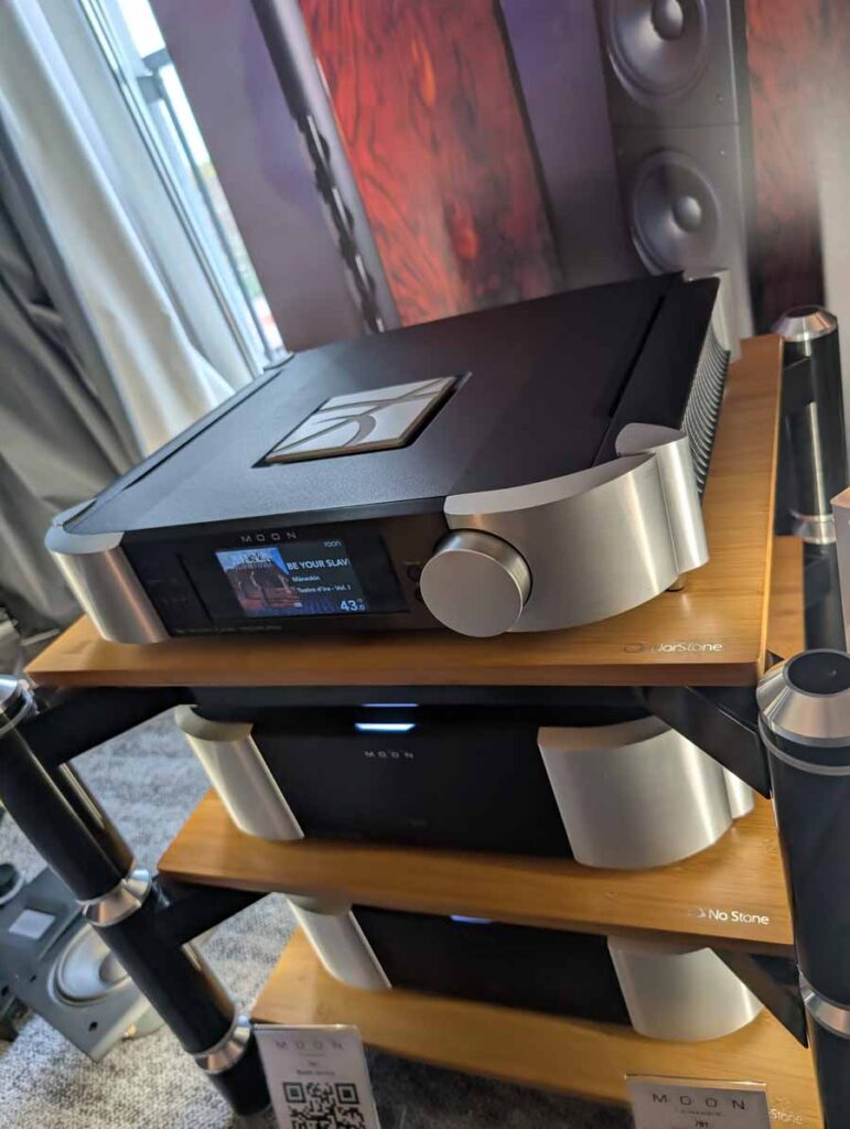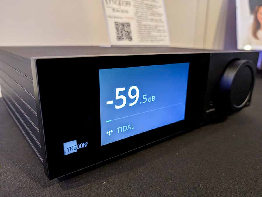 Well known for their RoomPerfect room correction DSP, Lyngdorf showed off a system consisting of a small pair of stand mounts and a pair of their subs – all dialled in with their RoomPerfect correction, allowing this system to have body, depth, and clarity from a small-ish system.