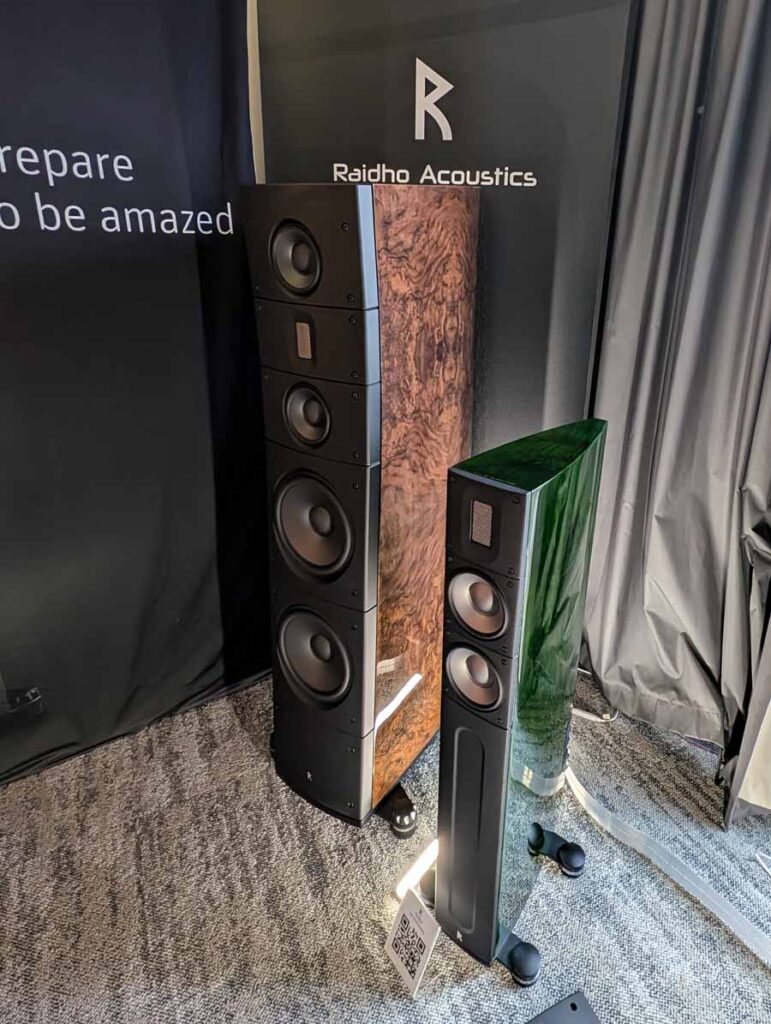 In here we had the excellent Raidho X2t Anniversary Edition speakers paired with Moon audio electronics, they also had the new Raidho TD 3.10 speakers on display in the room. They played some Maneskin in this room and it was great, an upbeat rock track with grit and control. The TD3.10 were the model playing when we were in the room. They also played a softer female vocal track yet there was still a great deep bass beat that these speakers handled with ease.