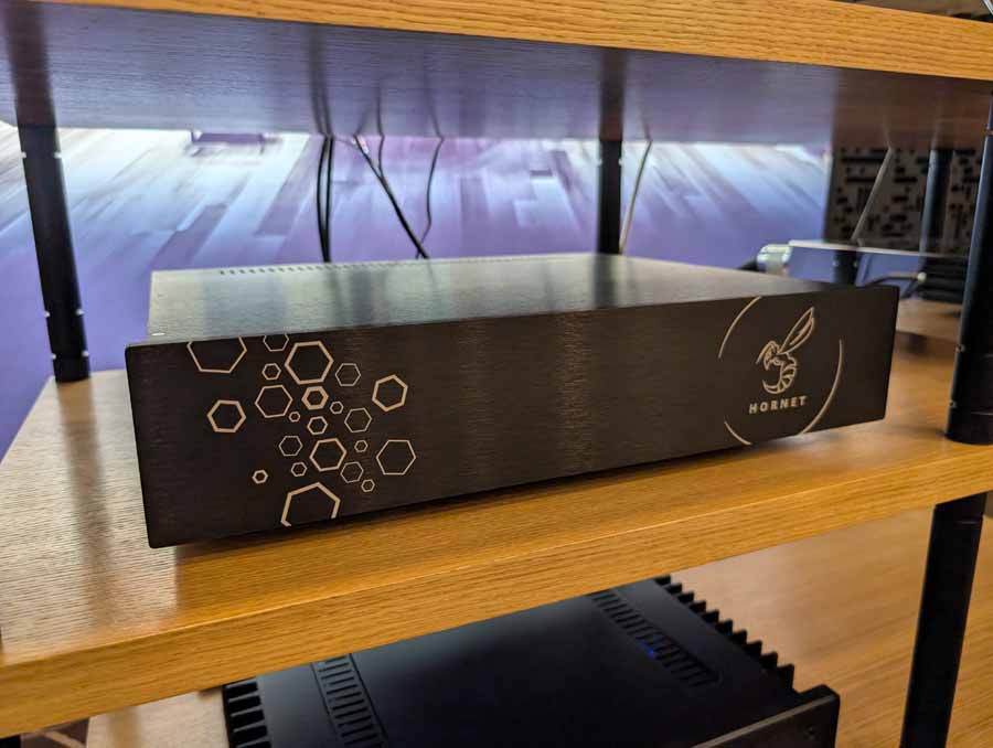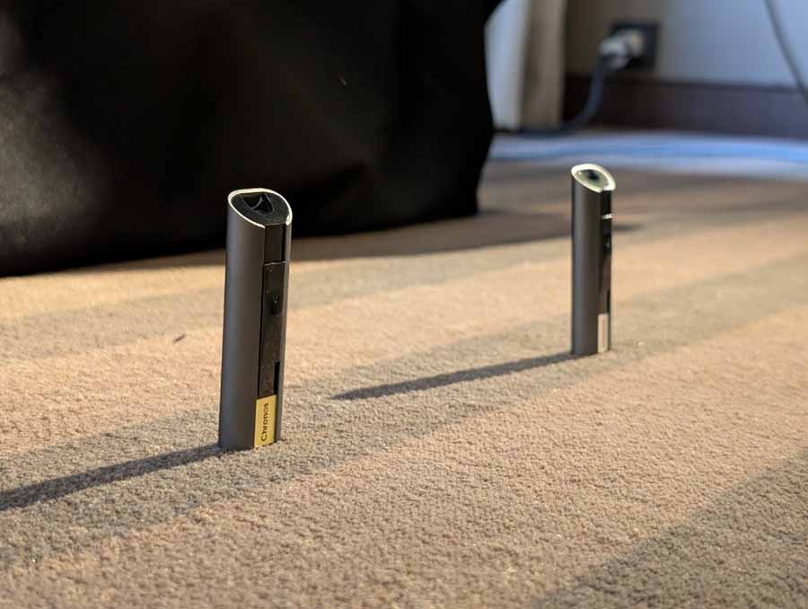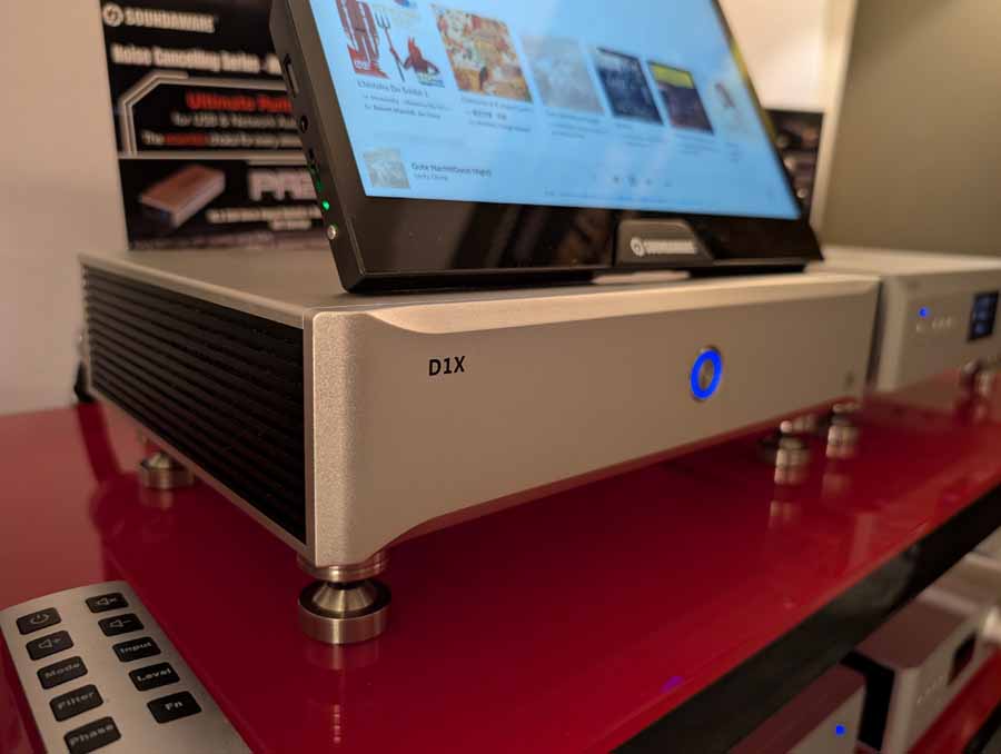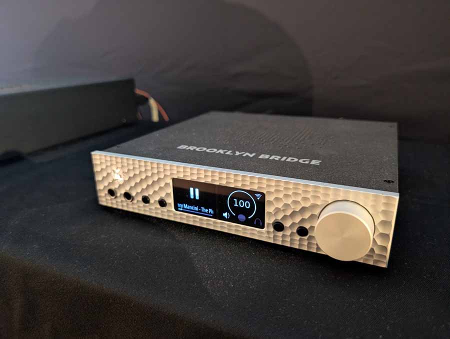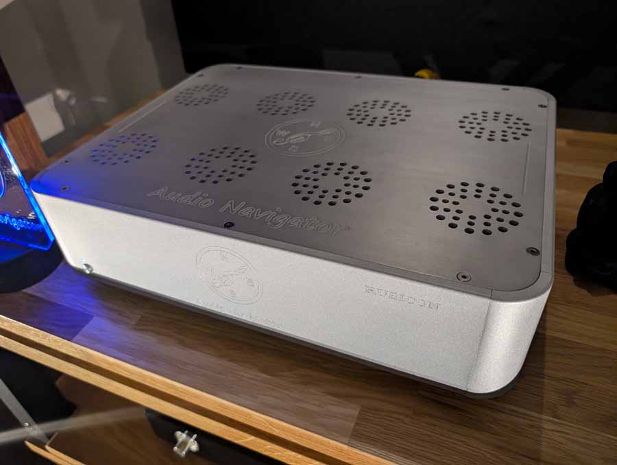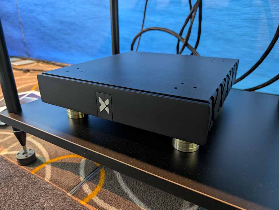 Nirvana Audio were showing off their Chronos optimizer for audio – some little stick optimisers. They were using in a system with Boenicke speakers, Mytek Brooklyn Bridge and Heed amp.