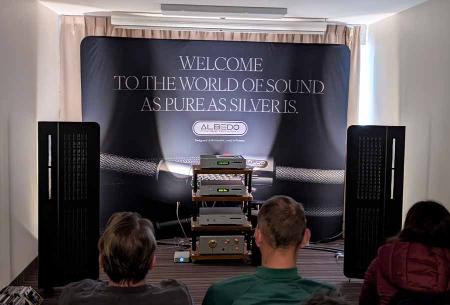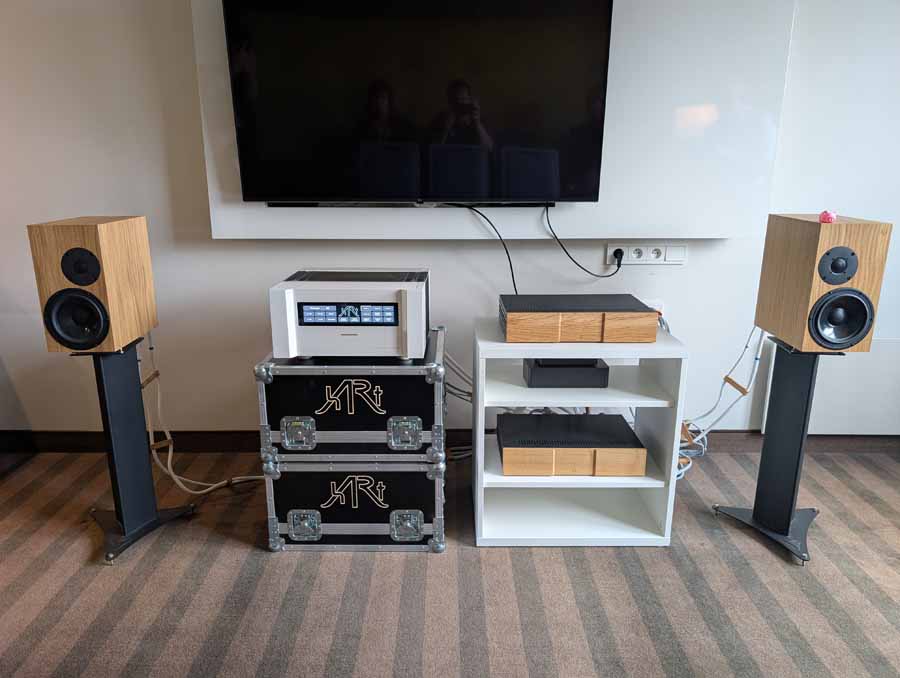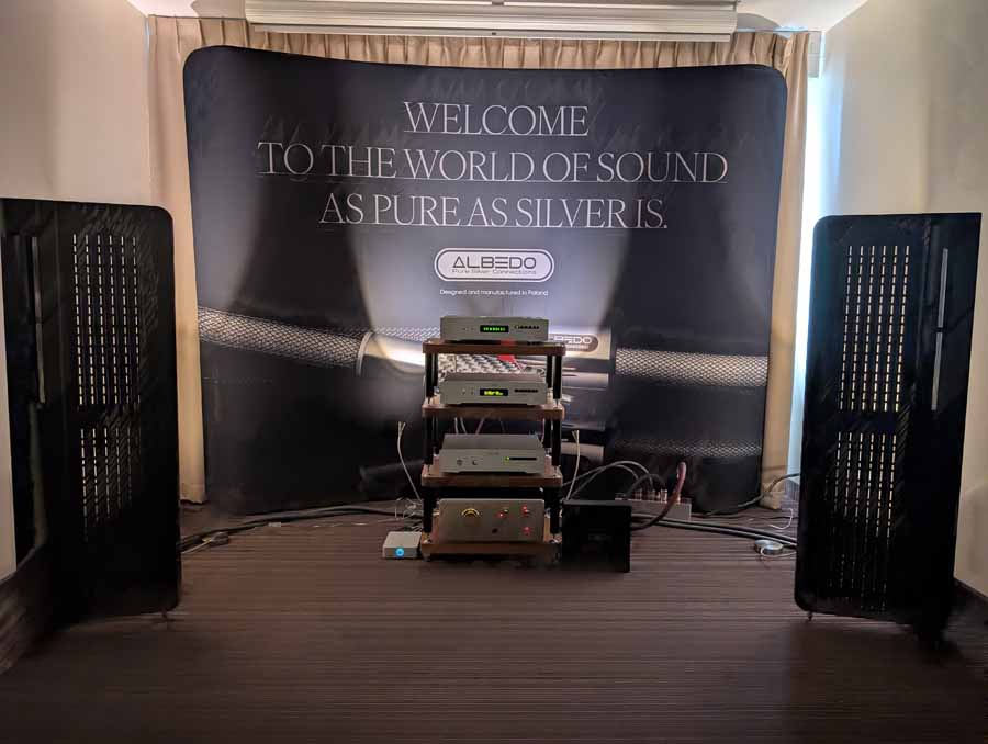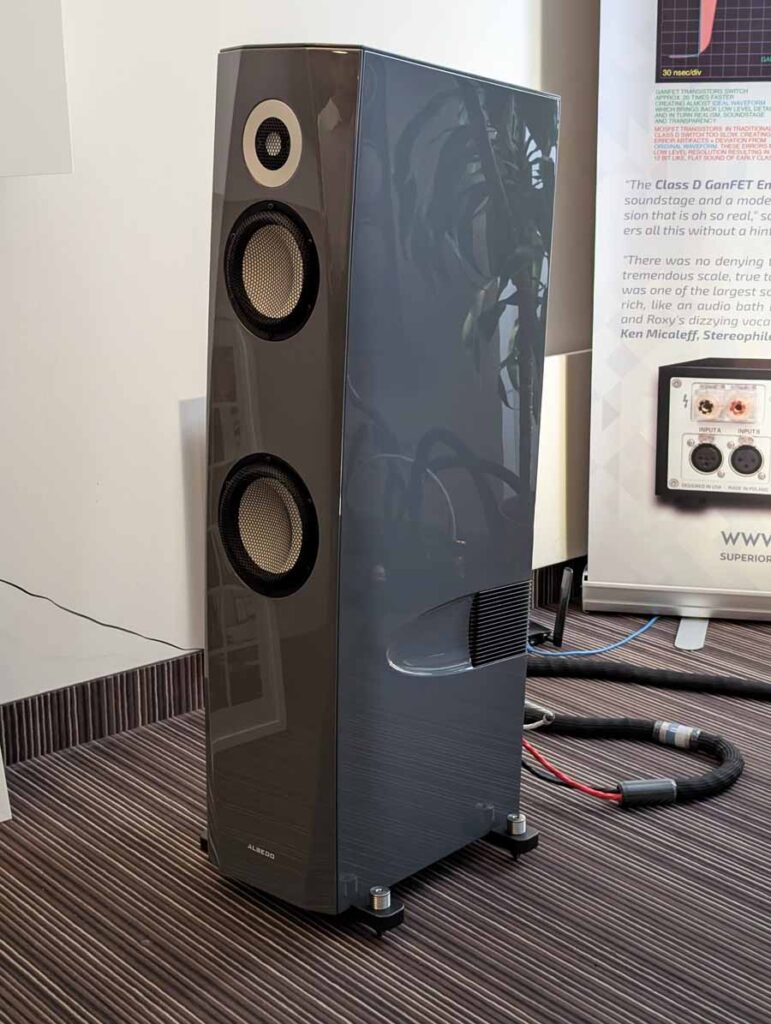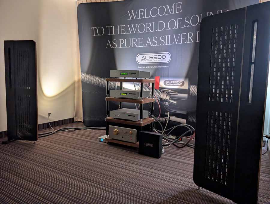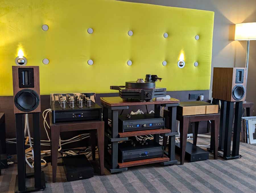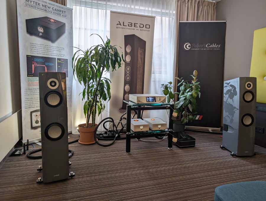 Mytek had a whole range of products on display and demo, the main system however consisted of their Empire streaming DAC and the new Empire amplifiers with GaN FET transistors. These were paired with Albedo Audio speakers, which are made in Italy and use a transmission line design. The Albedo speakers paired well with the Mytek kit, with quite a controlled and detailed sound.