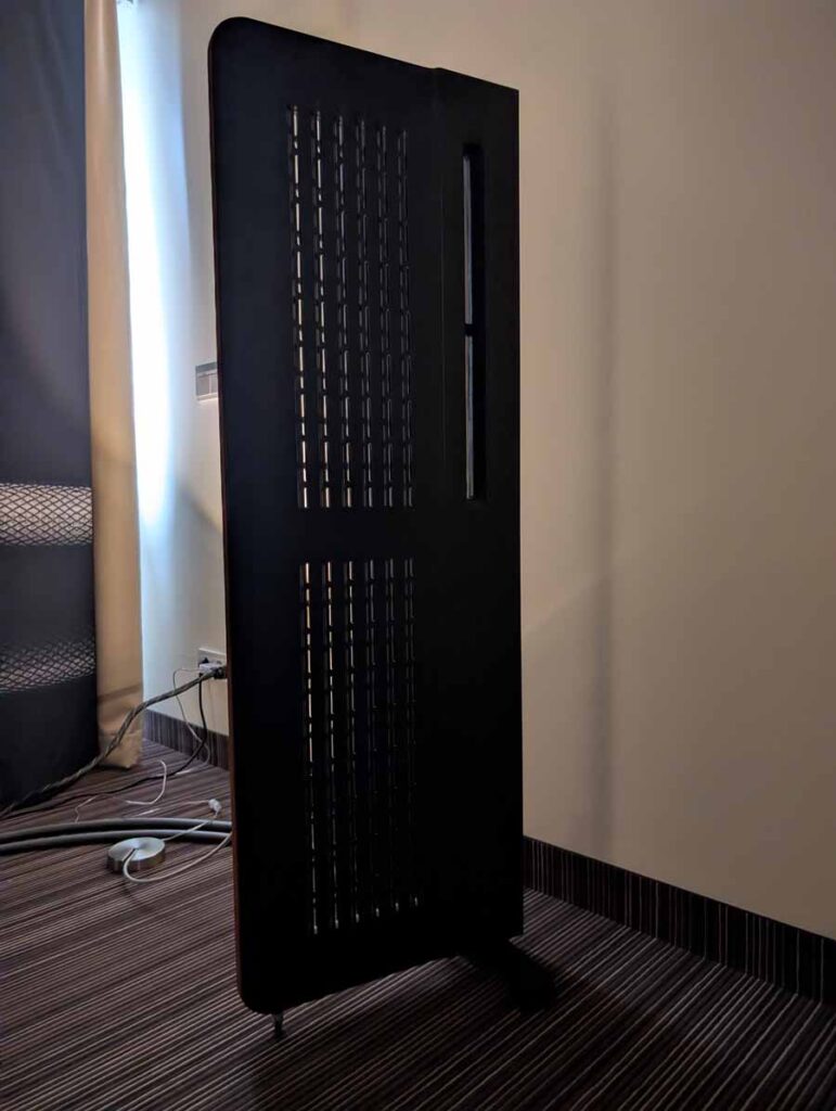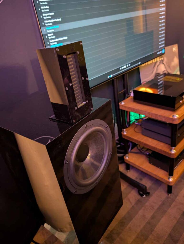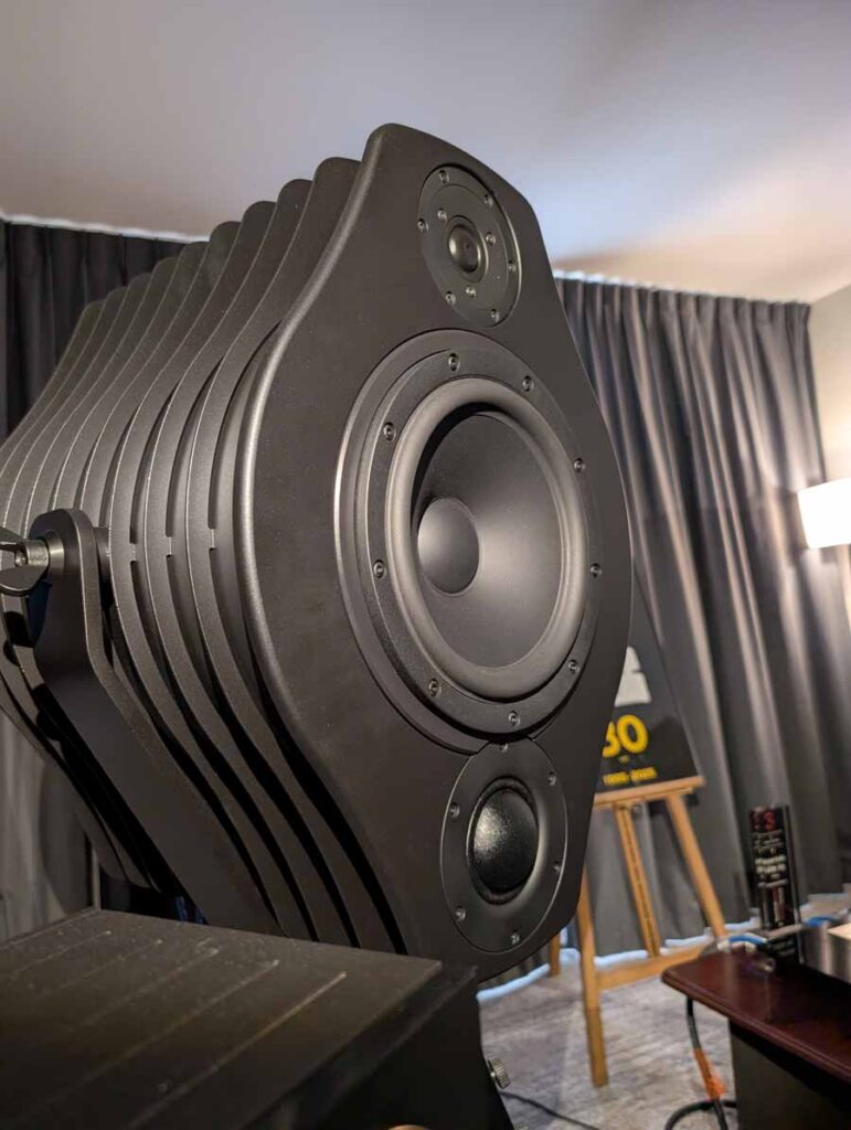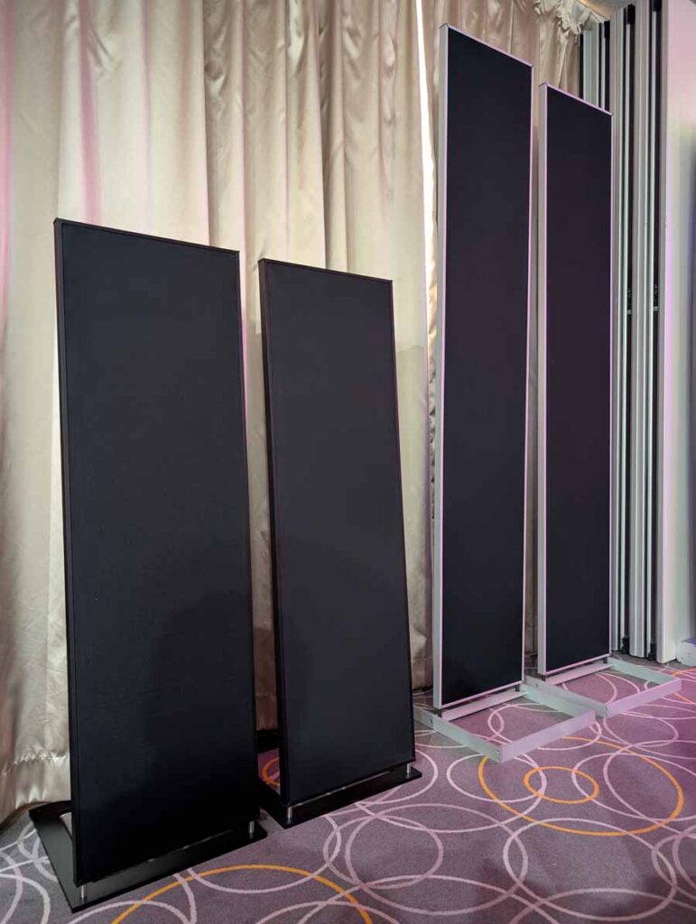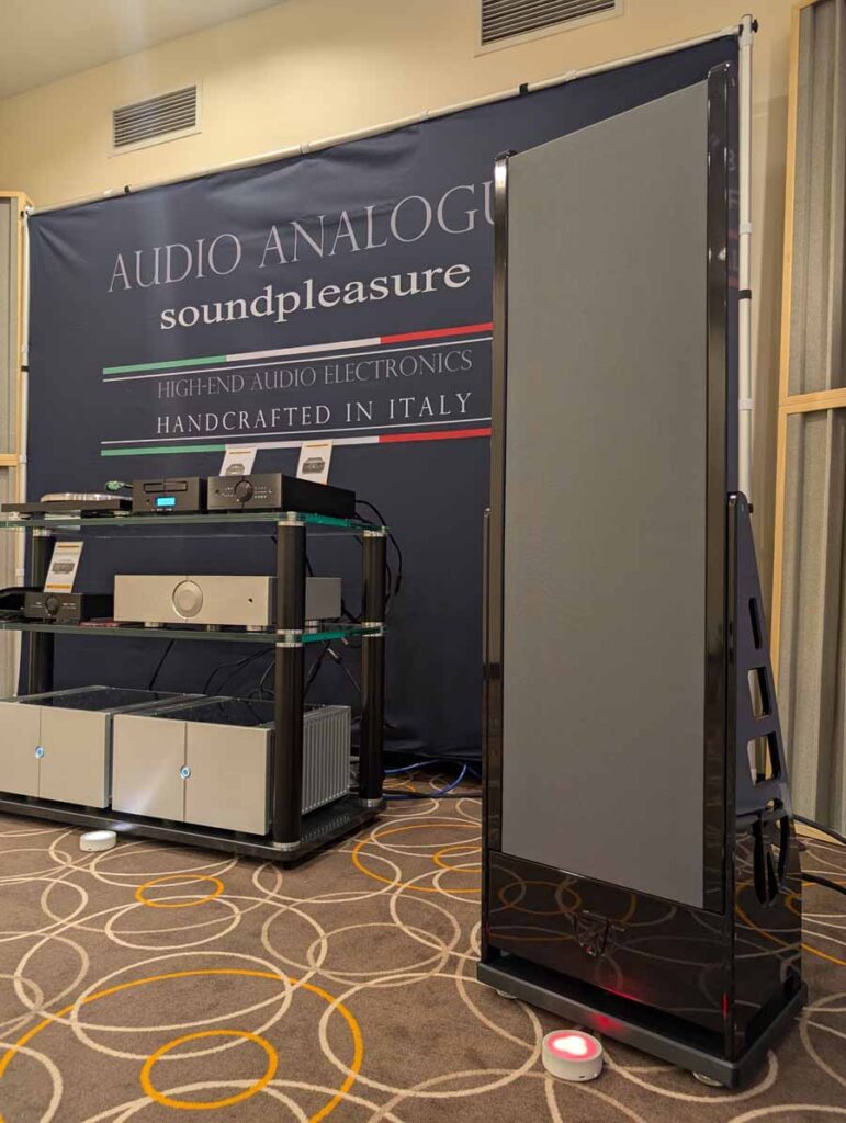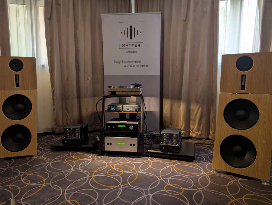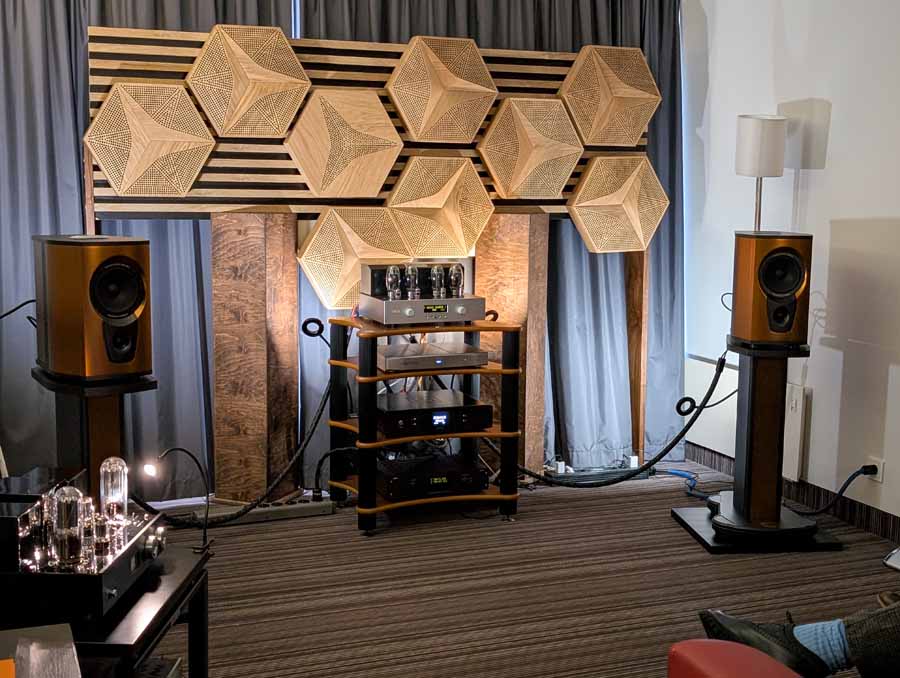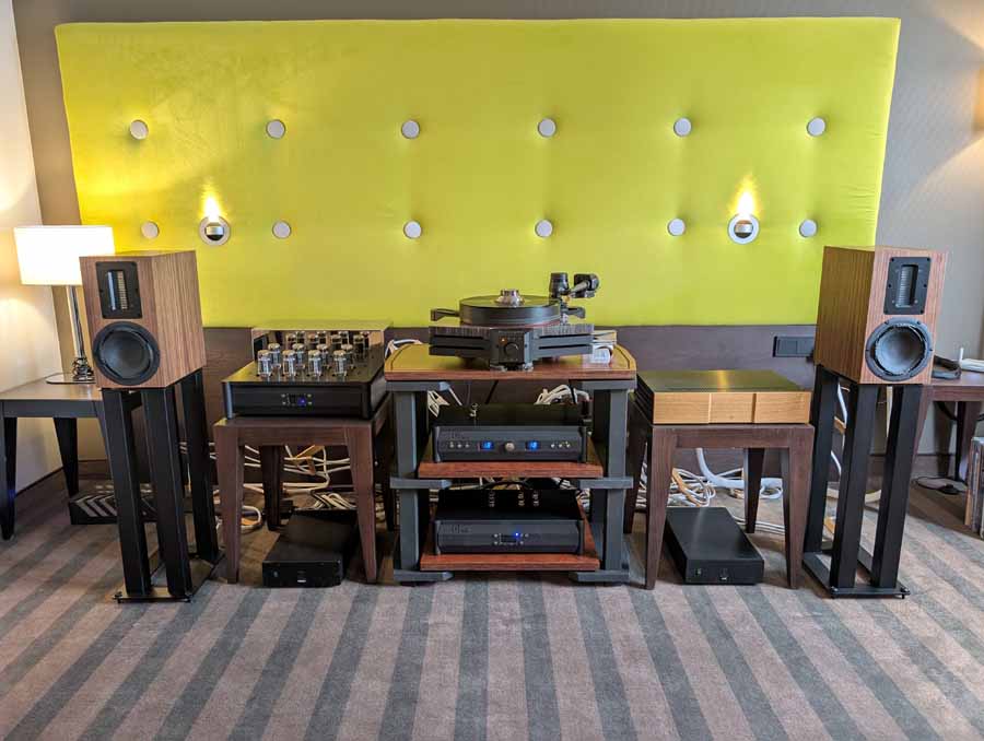 In this Delta Audio room we had a pair of Matter speakers, paired with a full complement of Tsakiridis electronics with the addition of a GoldNote DAC and CD player. These open baffle speakers had tons of punch with good vocal clarity too, an engaging system.