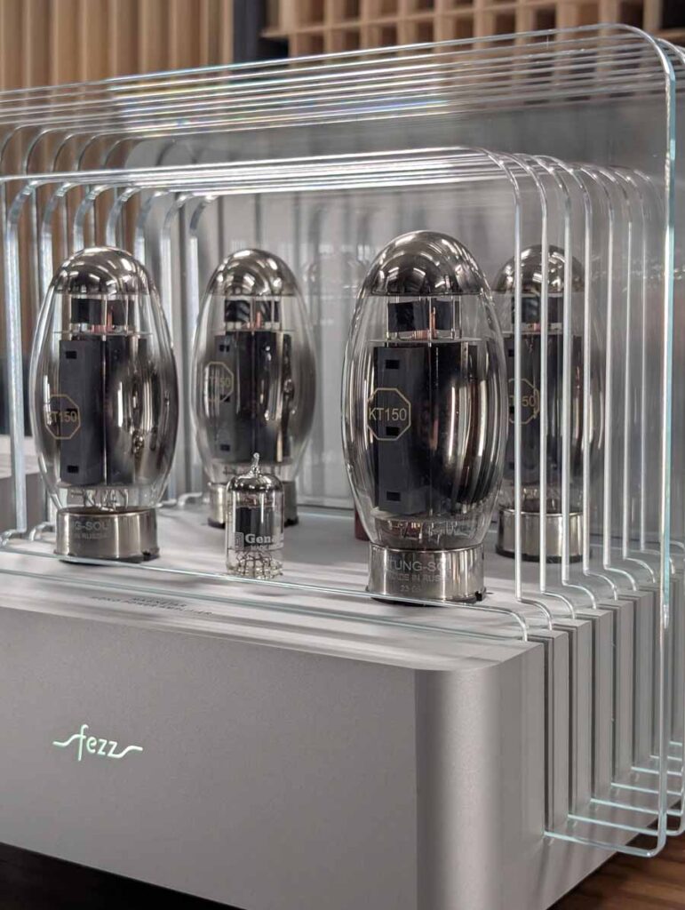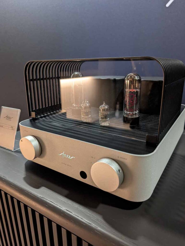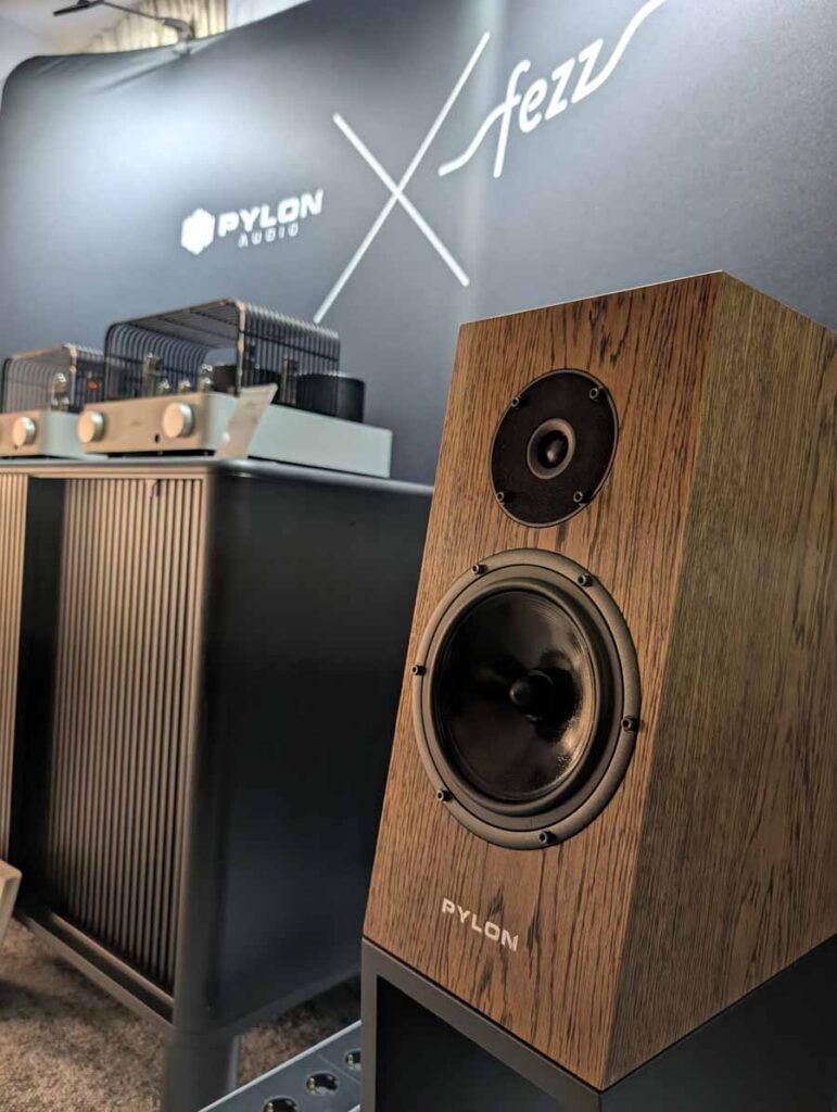 In this room you had the brand new Fezz Luna Mini, an affordable valve amp that looks fantastic, this was paired with a pair of Pylon Audio speakers, and was a brilliant match sonically. Fezz know what they’re doing when it comes to valves, and this small amp paired well with these stand mounted speakers.