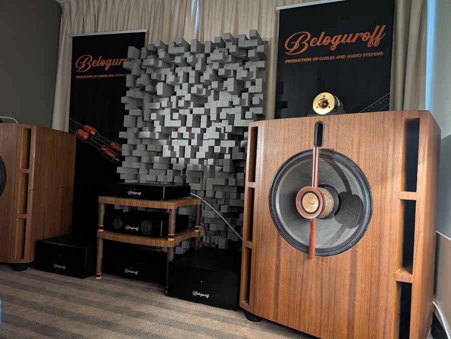 Beloguroff showed off a range of new products including speakers built around modified JBL drivers in ONKEN-type enclosures, a new entry level range of cables, and a new in-house streamer. An interesting setup, that was incredibly natural sounding.