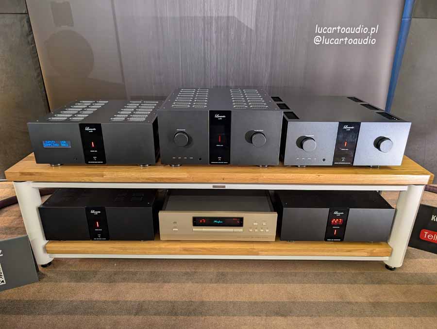 Debuting the Ferro line, Lucarto showed off the Ferro IA60 integrated amplifier with tube pre-amp, and Ferro IA40. They also had the new Ferro KS400 power conditioner, and Ferro DSD network streamer. They were paired with Qualio speakers, and Tellurium Q cabling, a very well put together setup that had great imaging, depth, detail, and control.