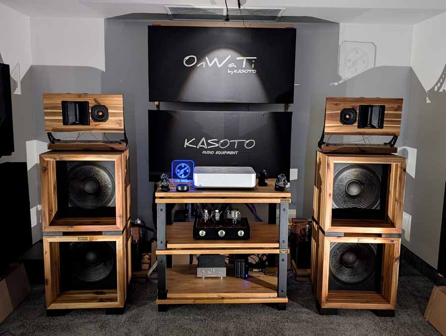 Kasoto make a wide range of audio furniture, and these were on display in this room, they also make a pair of open baffle speakers and the latest version OnWaTi BF were on demo in this room. Found sound on the other hand make DACs, Streamers, and amplifiers – mostly with tubes. In this room they had their Davio line, with the Plus and Elite DACs on demo, as well as Azure which features DSD playback capability due to the latest-generation DAC platform. Impressive system in this room, and one that sounded good too, with plenty of body, and space.