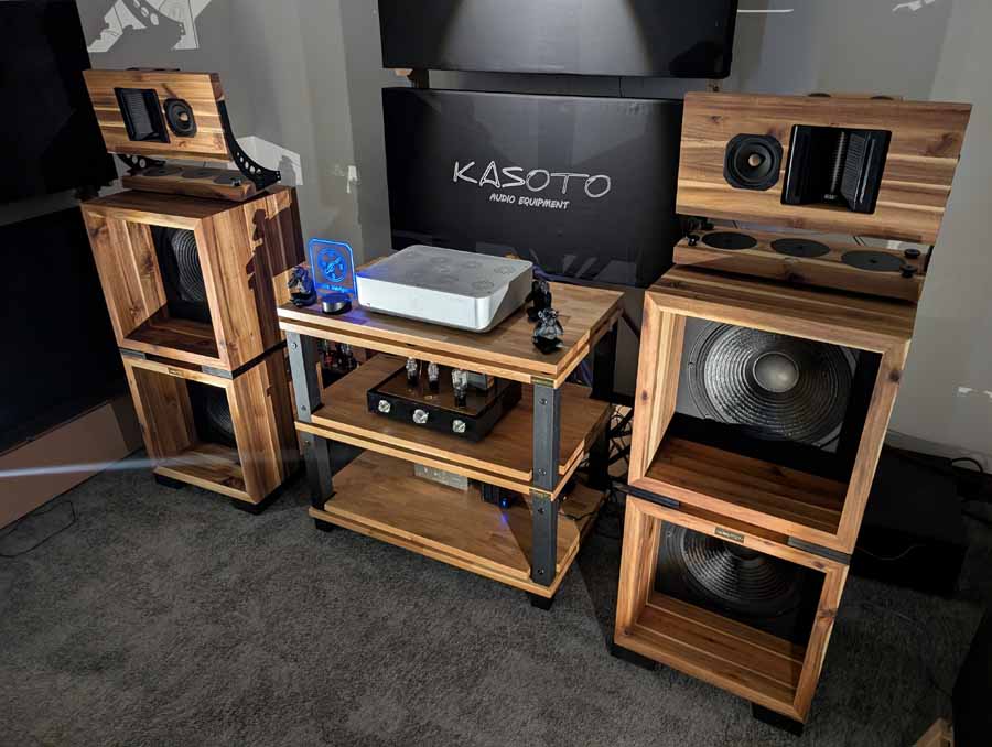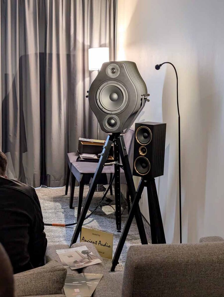 Intriguing speakers in this room, the new Ancient Deva system features speakers crafted from wood and plywood, with the front panels hand-painted to order. Horn + passive radiator, a match made in heaven. And they sounded as good as you’d expect, great detail, space, and body – ok, they may have been playing Diana Krall, yet it was surprisingly enjoyable. These speakers also look cool, with a slightly different look to them, overall, a winner in my books.
