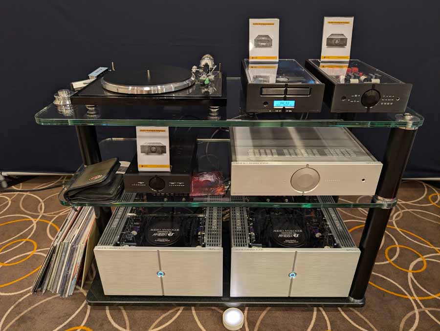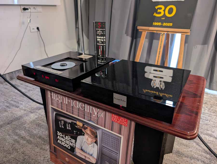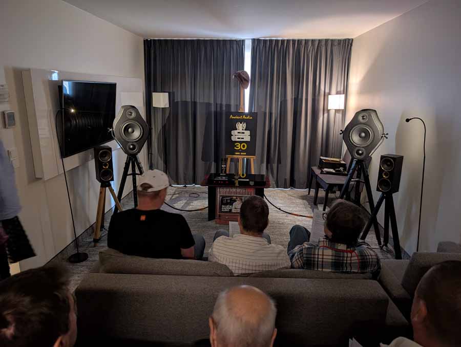 Ancient Audio are celebrating their 30th anniversary, and for this occasion they have released a new Lektor 30th Anniversary CD player. They also debuted a new speaker in this room, the Fram Arte Noir, a 3-way design with passive radiator to help with the low frequencies and an adjustable crossover so you can tune the sound to your preference. These were definitely not lacking body, with ample bass from this setup, and good clarity too.