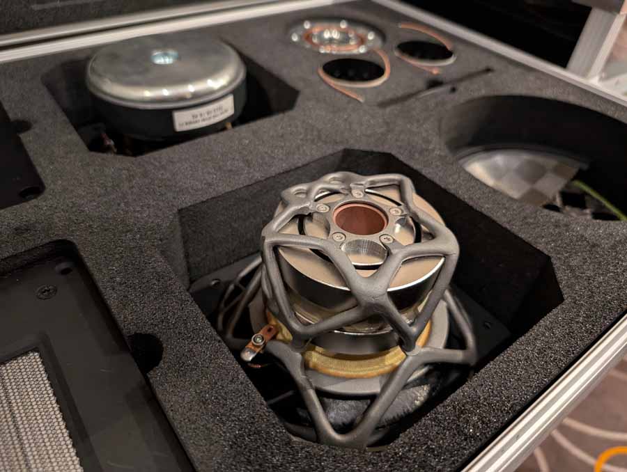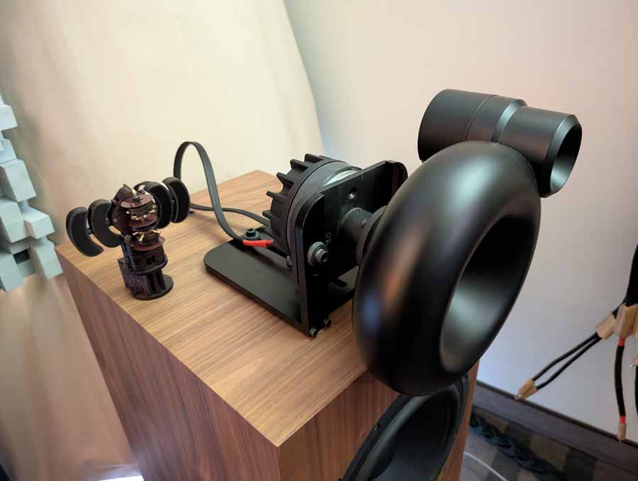 MiArt are a new company, they were showcasing a reference horn system, consisting of a monitor + sub setup, and a floor standing speaker with ceramic drivers. They had some horns playing in the room when we went in, and they were great, augmented with subs, they offered up a very smooth, and full sound.