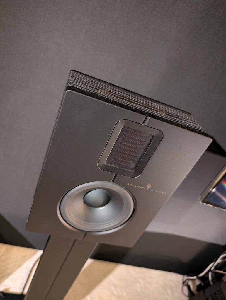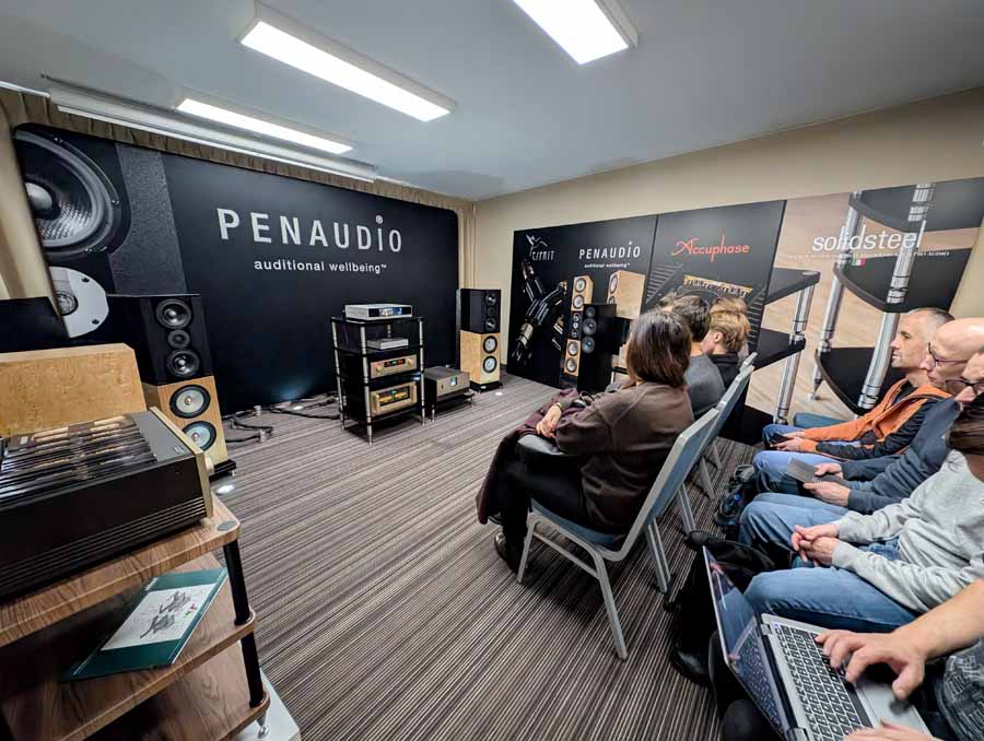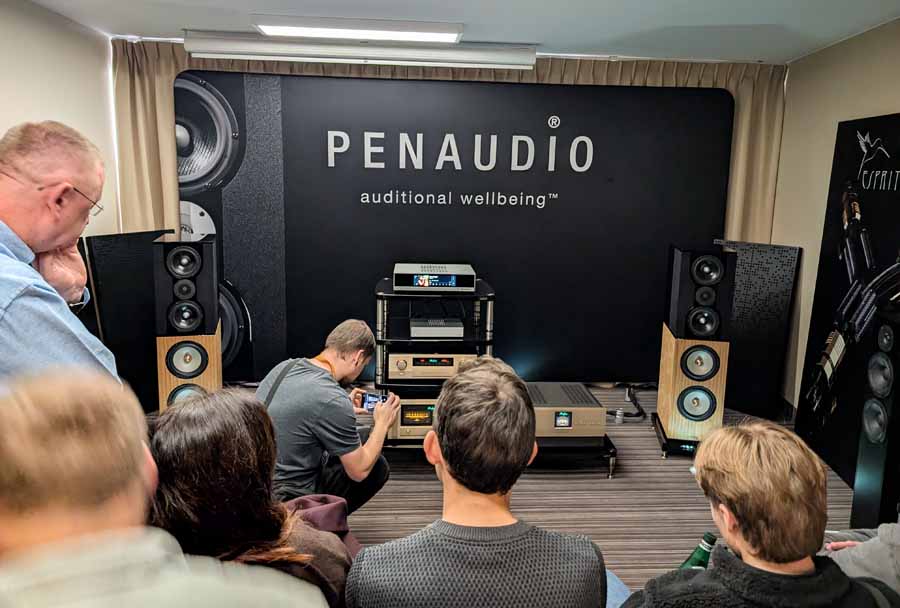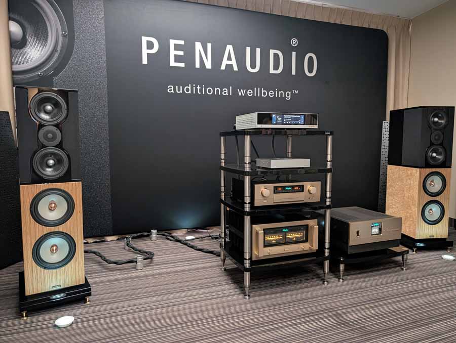 This room featured Penaudio’s Karelietta, one of their flagship models, using Seas diamond tweeters – these were paired with a Matrix Audio streamer and network switch, Accuphase electronics, along with Esprit cabling and SolidSteel stands. A great sounding setup, with plenty of energy and clarity.