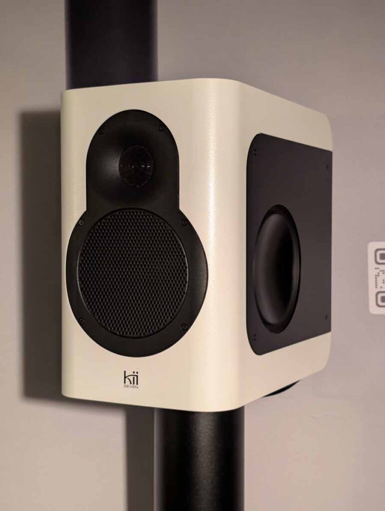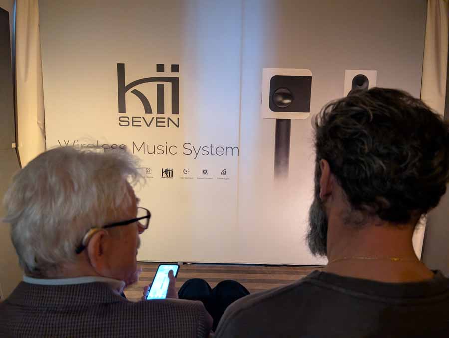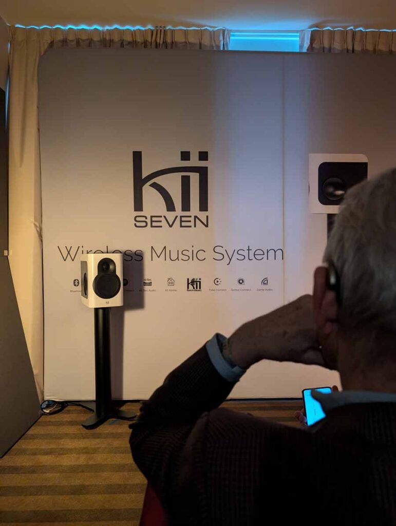 Kii had their, recently reviewed by HiFi PiG, Kii Seven model in this room – and they played Wolf Totem by The Hu, a track that I love. The impact these speakers have, the sheer energy, all without a hint of falling apart of tipping into harshness. Every time I hear these, they just sound fantastic, and I know Stu enjoyed his time with them. The way this track builds and explodes, shows these Kiis have such good transient response and imaging, a brilliant speaker all-round.