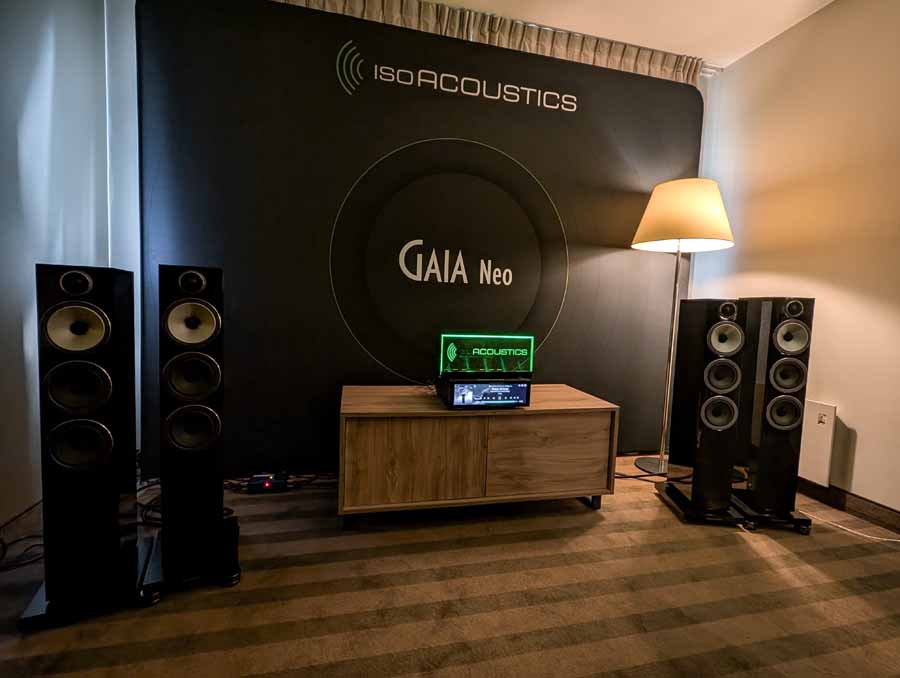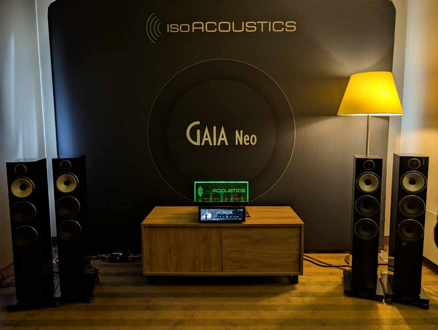 We’re very familiar with the IsoAcoustics products, and they had their usual demo where it was easy to hear the difference between the system with and without the Gaia feet. The sound gets noticeably tighter and more controlled with the IsoAcoustics in the system, these work incredibly well. The new Gaia Neo also look fantastic, and they had a good display of their products at the side of the room.