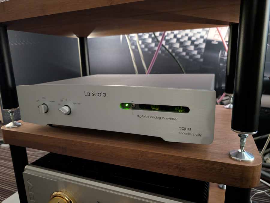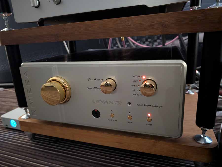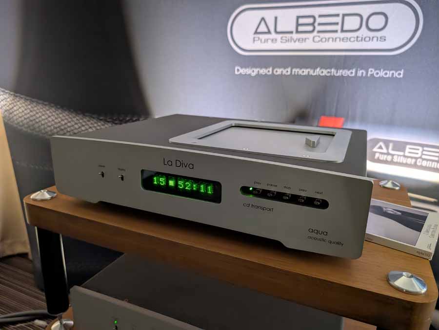 In the first room you had the Riviera Levante amplifier paired with Diptyque DP 140 MK2 and QLN Prestige Three speakers, Aqua Acoustic Formula DAC and LinQ network player. This system was also using cabling from Albedo. These are very open sounding speakers, with enough depth and punch when required.