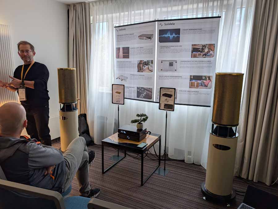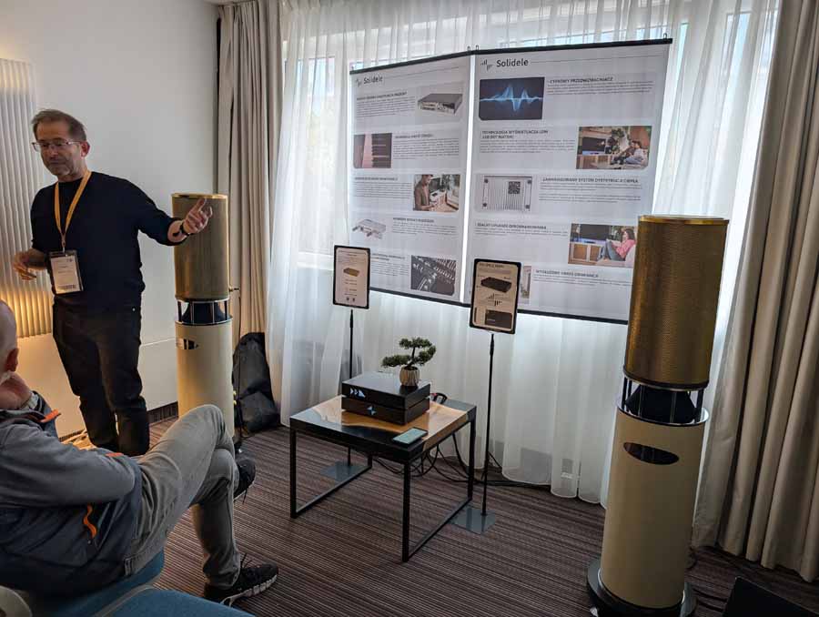Solidele are known for their stereo power amps, at this show they released some all-in-one components, including their IA501, streaming amplifier. They were doing a talk about the system in this room, and the speakers were interesting.