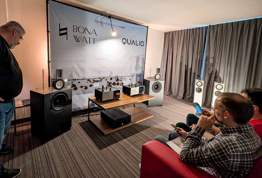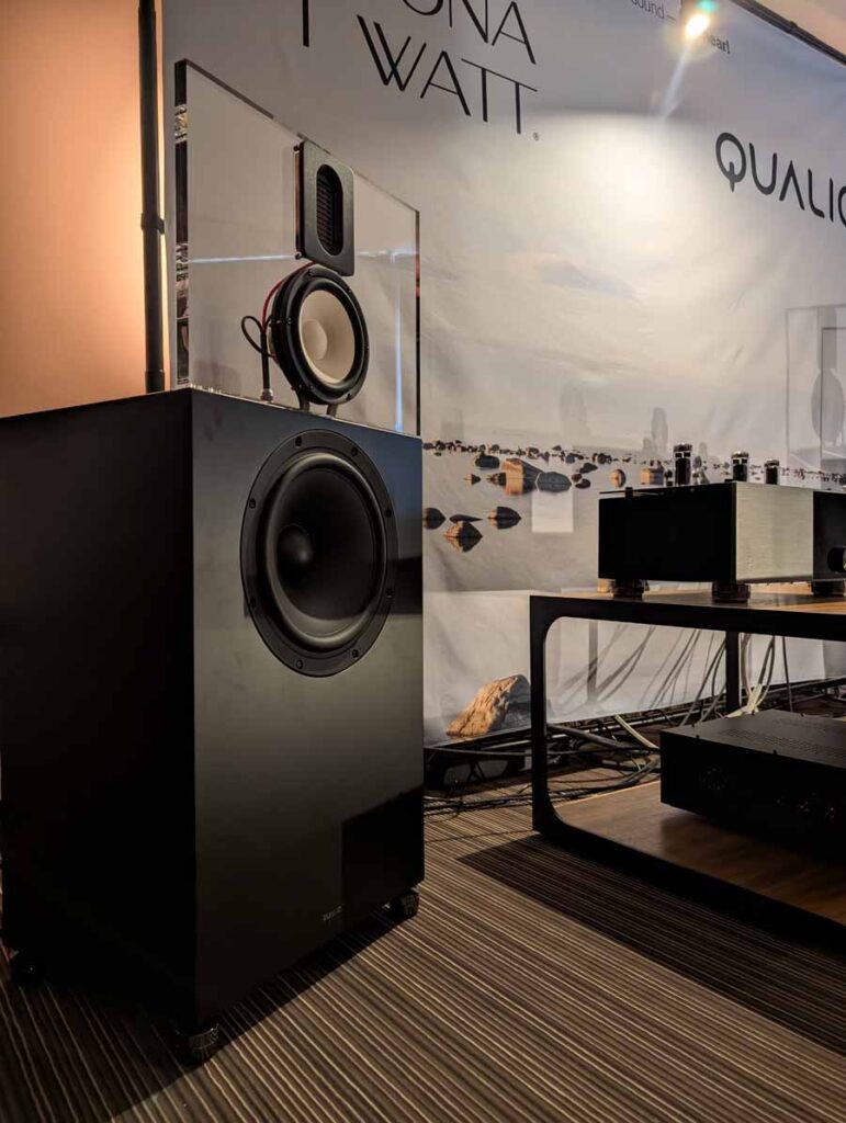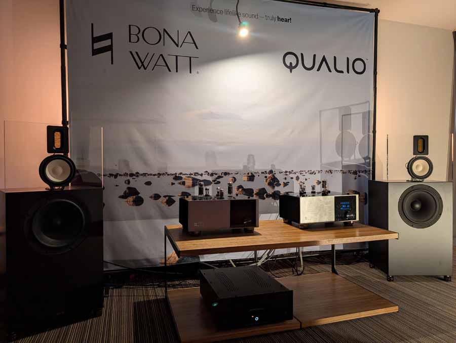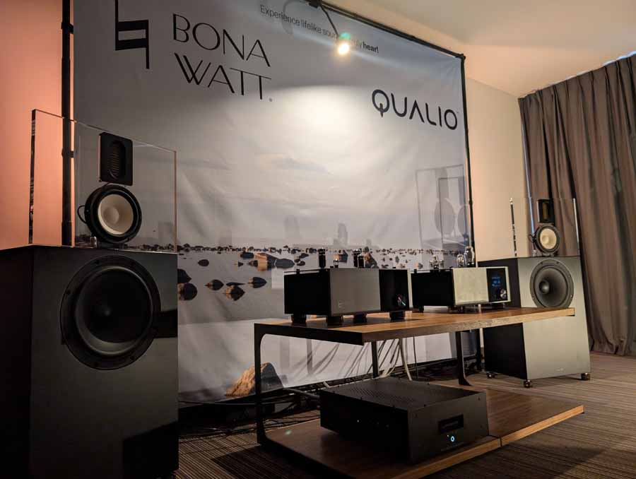 Another debut at the show was the Qualio IQ30 speakers, with a larger 12” woofer, these are sure to fill a bigger space with ease, yet they remain easy to drive. These new IQ30’s were paired with BonaWatt amplifiers and a Lampizator DAC – easily room filling sound with a great sense of both clarity, and fullness.