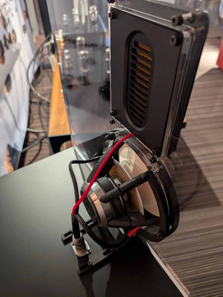 BonaWatt showed off the latest iteration of their Triton hybrid integrated amplifier with modular expansion cards – ensuring this amp is fairly future-proof. Two new cards have also been released, one with a DAC on it, the other being an MM/MC phono stage developed in collaboration with MuzgAUDIO. In the demo system they had a BennyAudio turntable alongside OePhi speakers, and OePhi cabling. These OePhi speakers are using the popular Purifi Ushindi drivers and they sound brilliant, they were playing a popular track I’m Free by Symbolico, and they handled it with ease. Tons of detail and clarity mixed with big, punchy bass – what’s not to love.