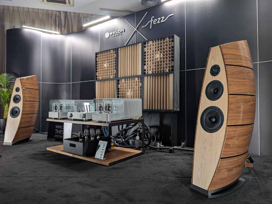 In the main Fezz and Pylon room we had a full balanced Magnetar system from their Fezz Supernova line. This consisted of two 200-watt monoblock amps, a tube line pre-amp, Lampizator Pacific DAC, and Pylon Gamma speakers. Pylon also had their Beta, and Alfa speakers on display in this room, completing their Amethyst line of speakers. The Gamma speakers sounded brilliant with the Fezz monoblocks, this was a setup that sounded as good as it looked, delivering the weight and scale of any song without breaking a sweat. The spatial cues in the music were accurately placed within the soundstage and it all come together in a captivating and coherent sound.