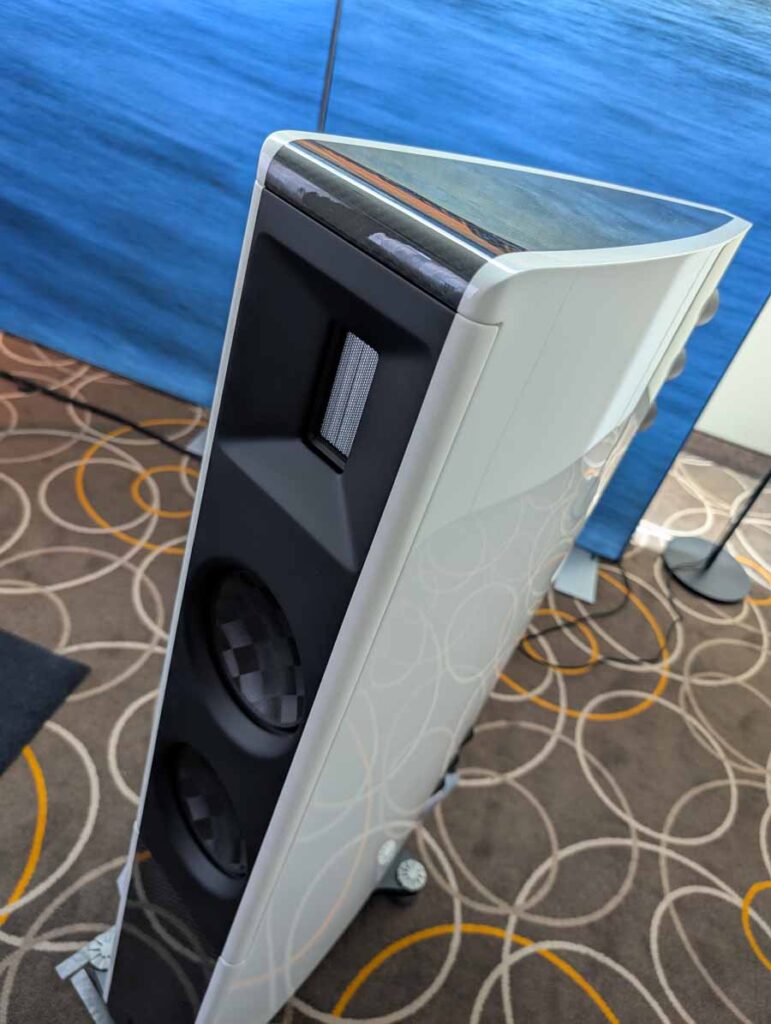 Quite unique looking speakers, made from concrete, they had their Gemini model paired with an Aurender DSDAC, Meitner ma 1 dac, and AudiaFlight FLS4 power amp. These speakers had a tight, controlled sound that handled a wide range of music with ease.
