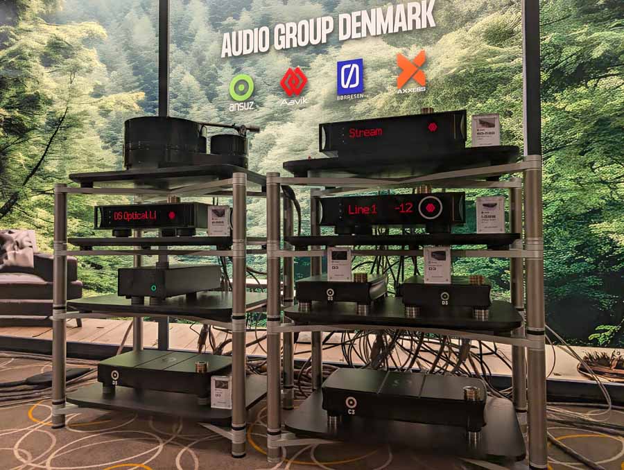 Audio Emotions had a couple of rooms with Audio Group Denmark systems, the first using the Axxess Forte 3 all-in-one streaming amplifier, and Borresen X2 speakers. They were using Ansuz cabling and accessories throughout the system. As you’d expect, this was a very well dialled in room, and the Borresen X2 sounded superb when paired with the Forte 3 streaming amplifier. They have that signature control, and snappy transient response paired with explosive dynamics, great stuff!