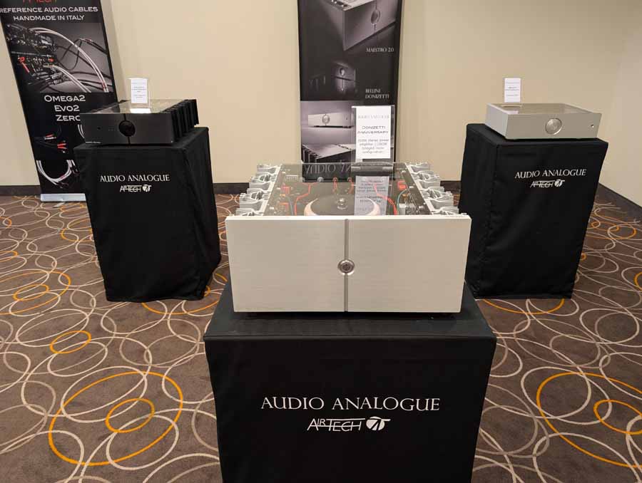 Audiophase had their whole speaker lineup on display, in different finishes, as well as their range of cables, and previews of things coming in 2026. These were paired with Perreaux electronics, including their latest 300iX integrated amplifier, and flagship VP4 phono stage. Big, bold, punch, and spacious is how I’d describe this room – handling dynamic shifts with ease and composure.