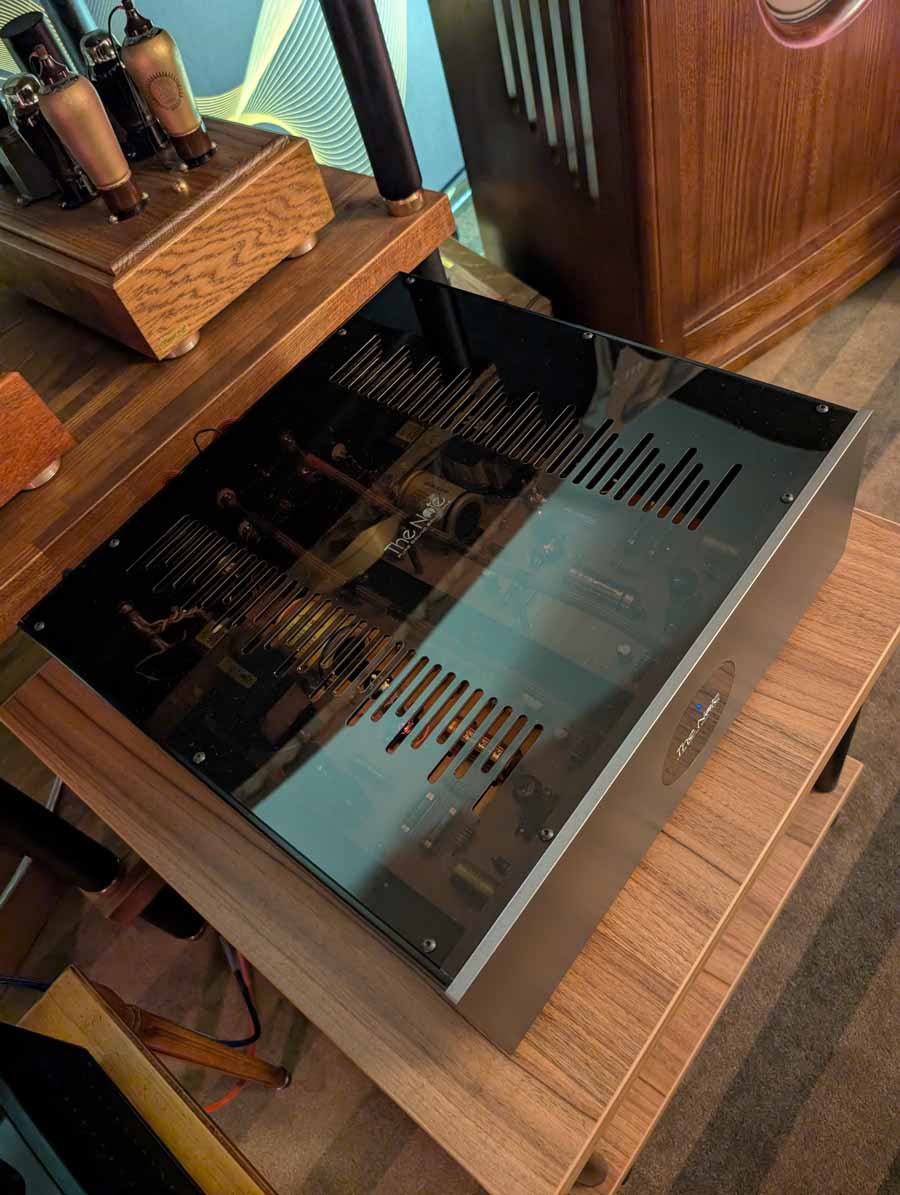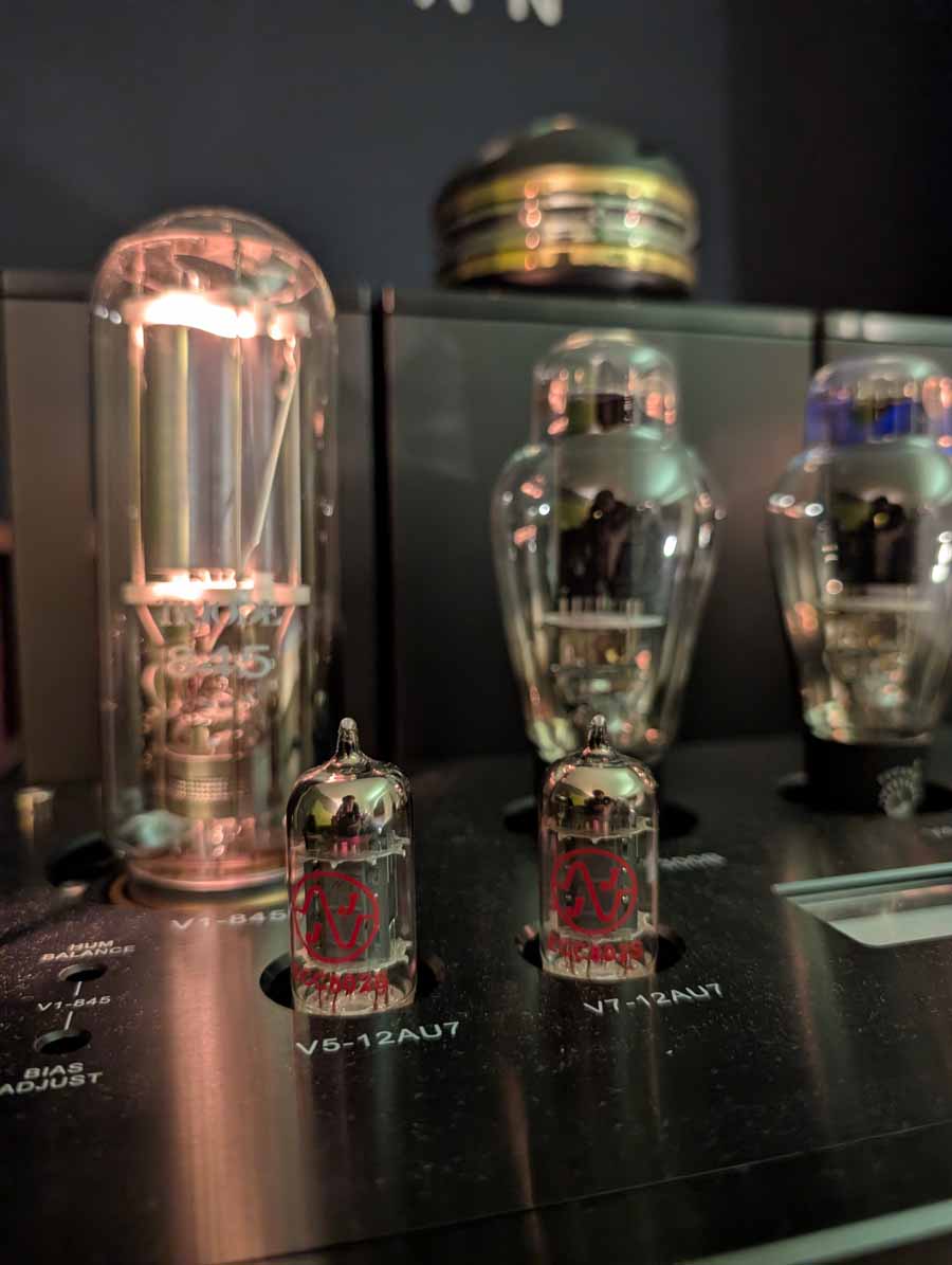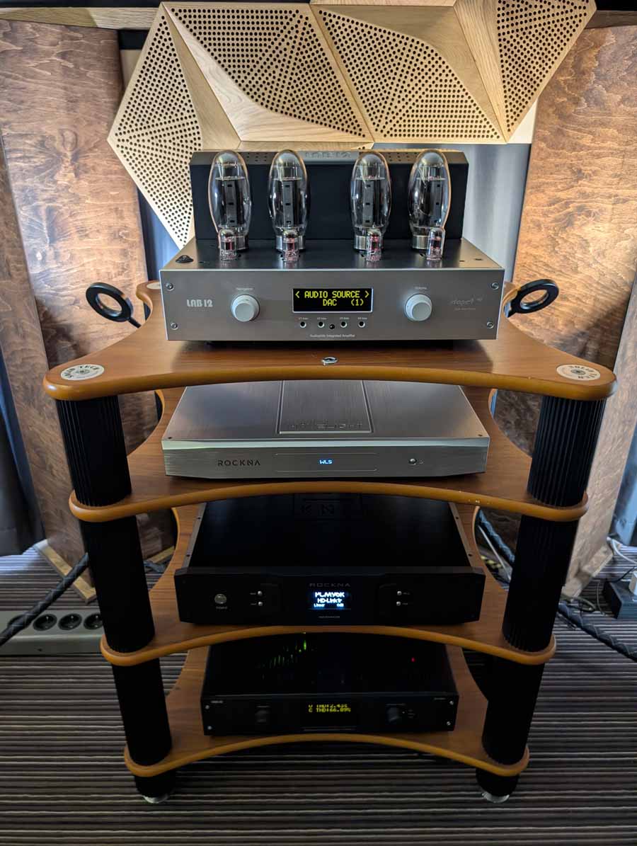 Line Magnetic and Lab12 tube amps with Psvane tubes partnered with AudioSolutions Virtuosos speakers in this demo room, a great pairing. Massive Attack’s Angel sounded excellent with plenty of deep, pulsating bass and clarity when the vocals kick in.