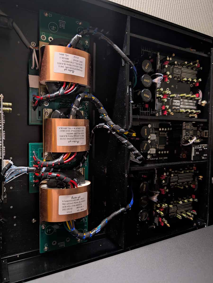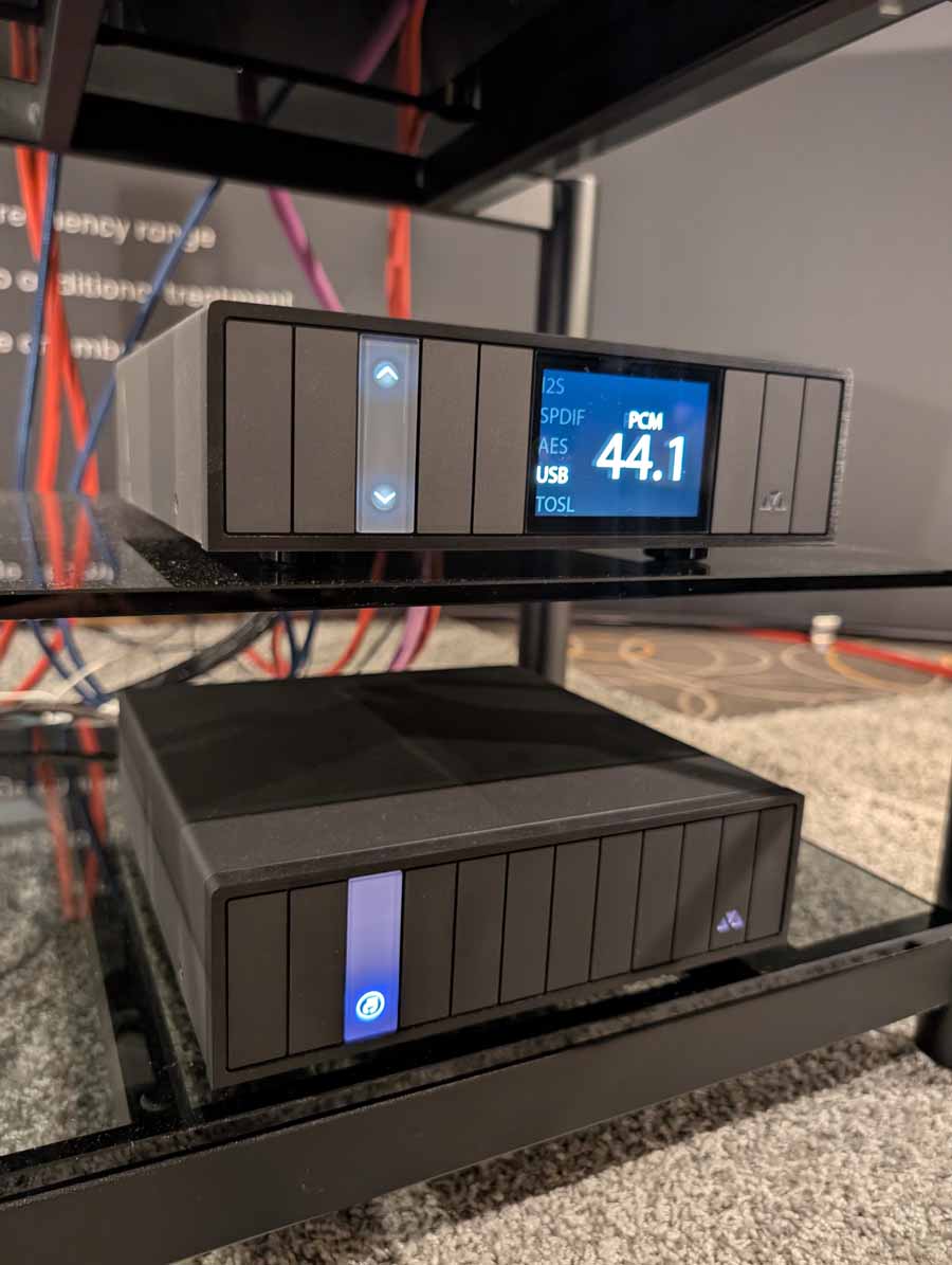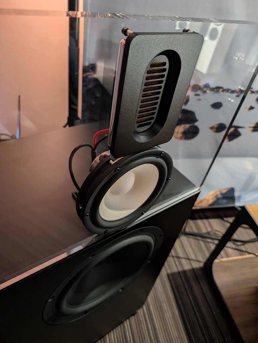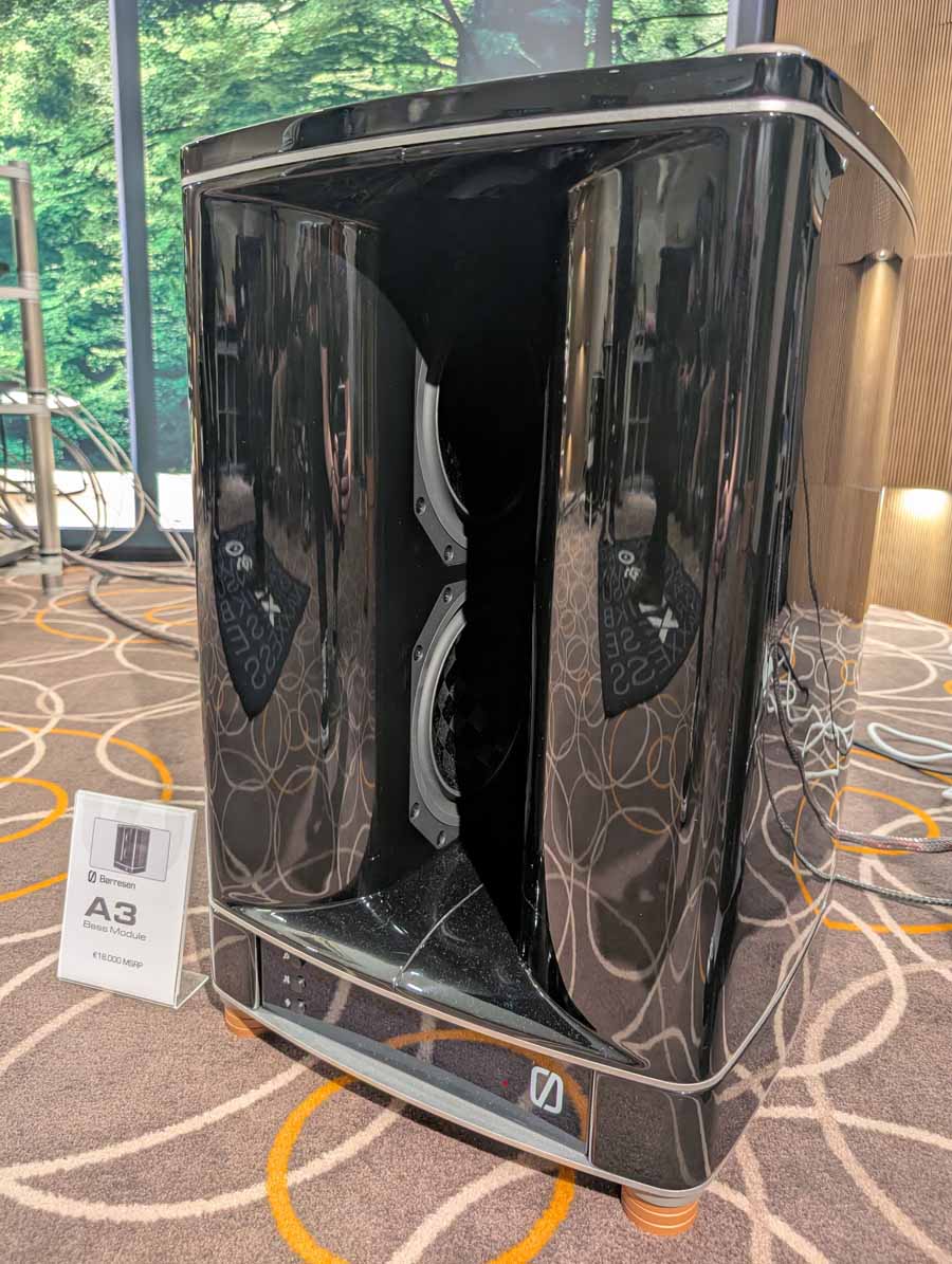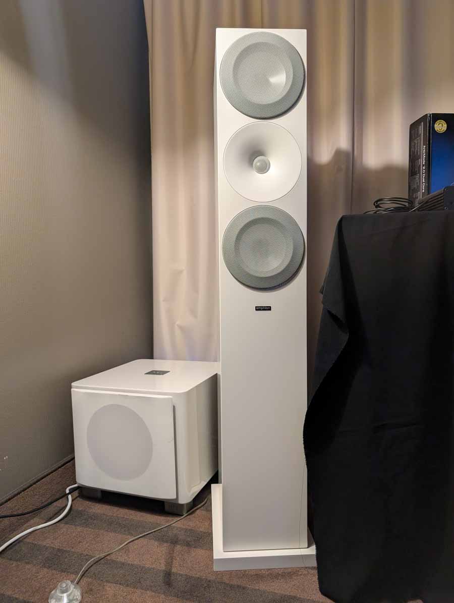Anti-mode room correction in various forms, in this room they had it paired with a pair of Amphion speakers and a REL sub in the corner. This kind of DSP is brilliant if you have a somewhat tricky room and want to seamless integrate a sub or just level out the speakers. They did a demo with it on and off, and it really does flatten out the response and get rid of the worst of the room modes without ruining the voicing of the speakers.