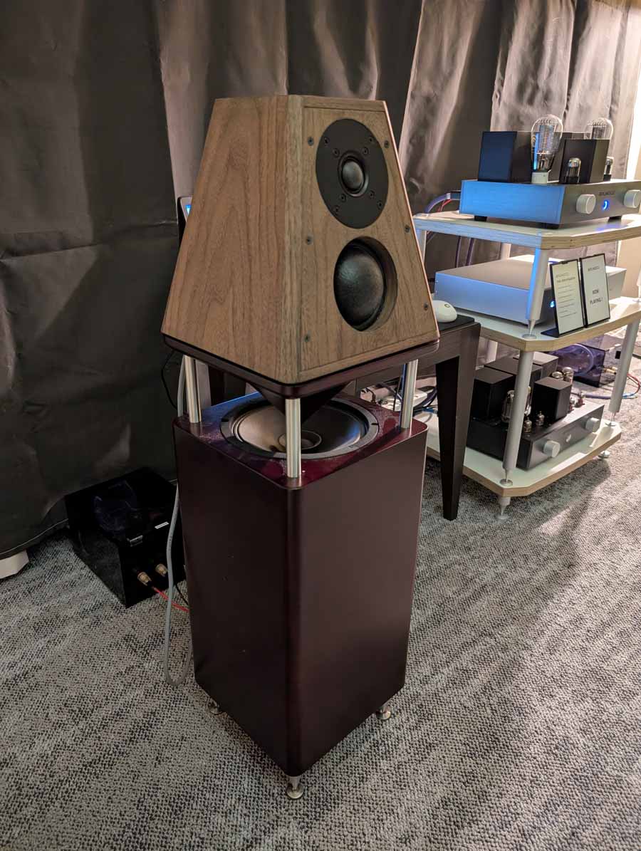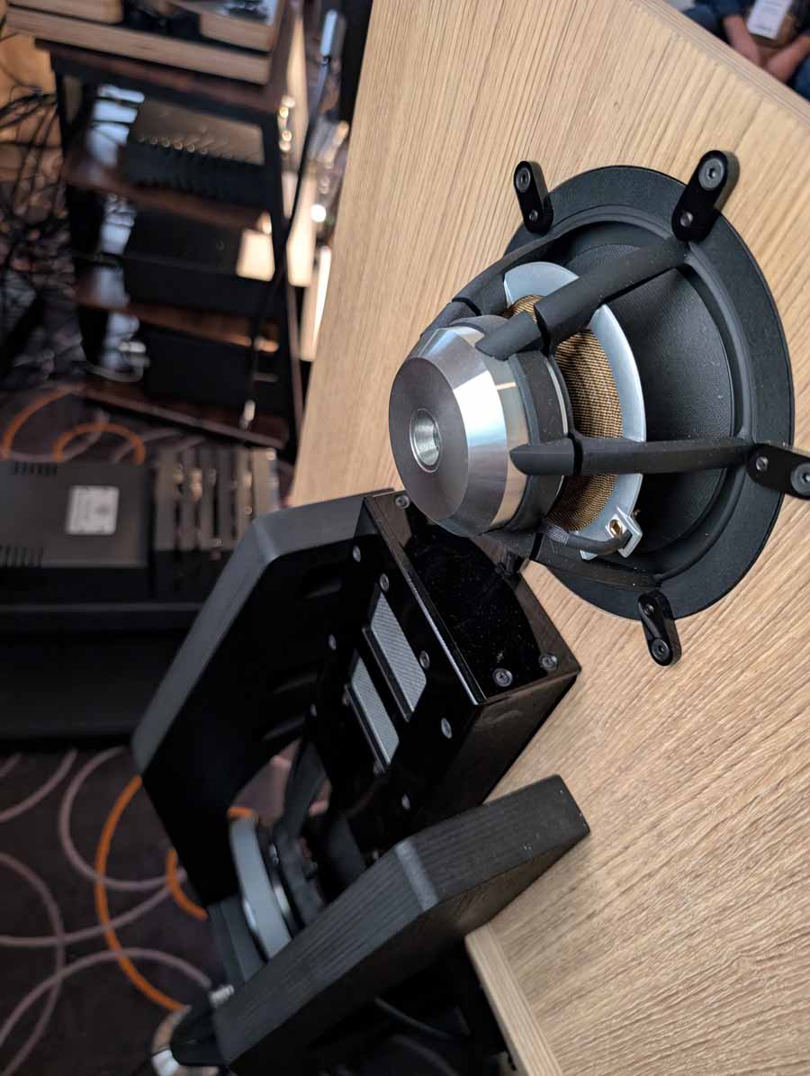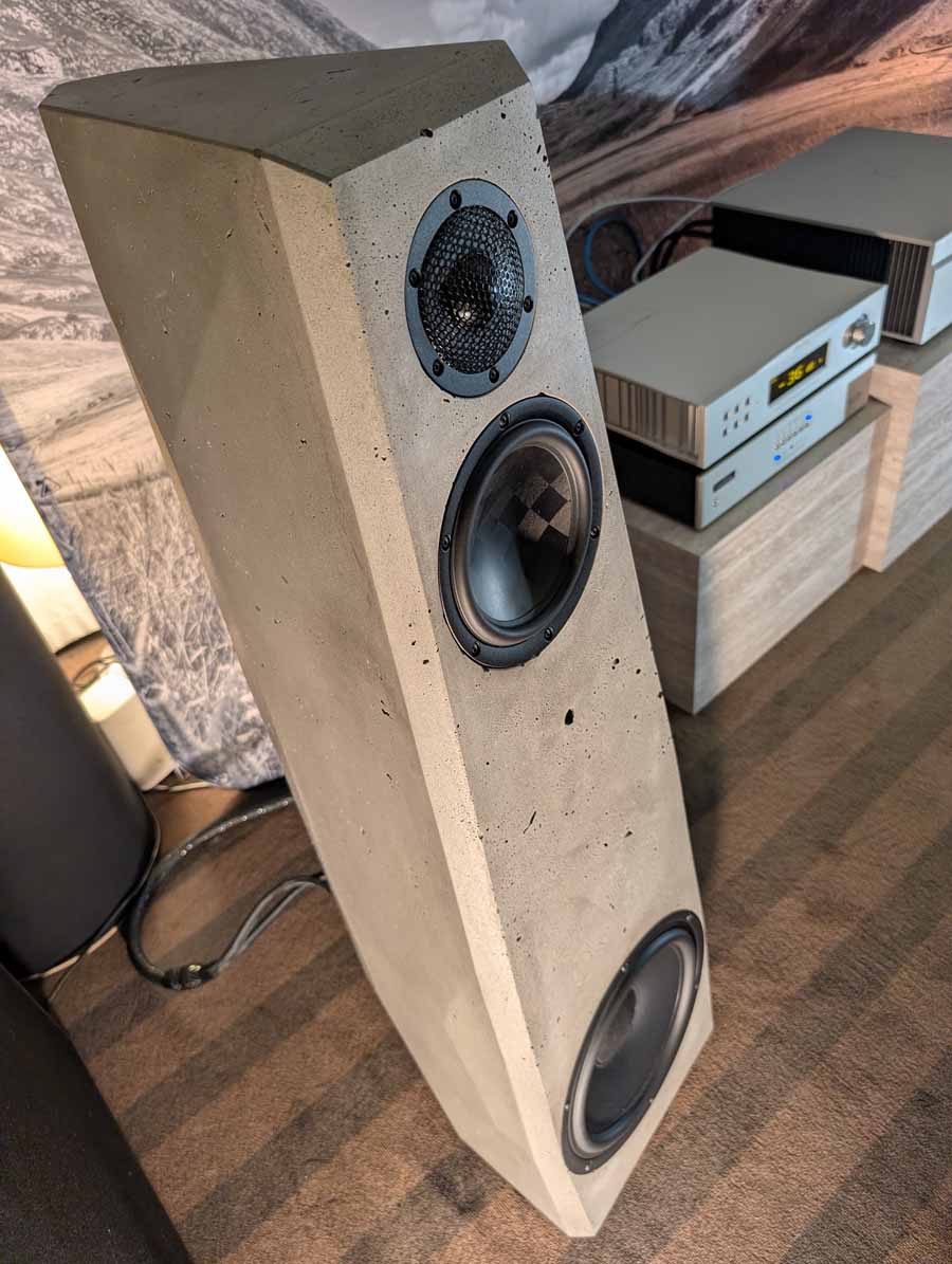 Quite unique looking speakers, made from concrete, they had their Gemini model paired with an Aurender DSDAC, Meitner ma 1 dac, and AudiaFlight FLS4 power amp. These speakers had a tight, controlled sound that handled a wide range of music with ease.