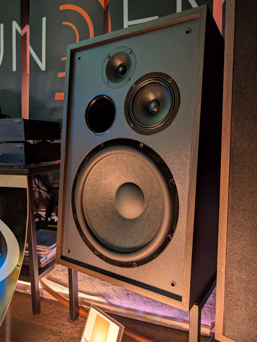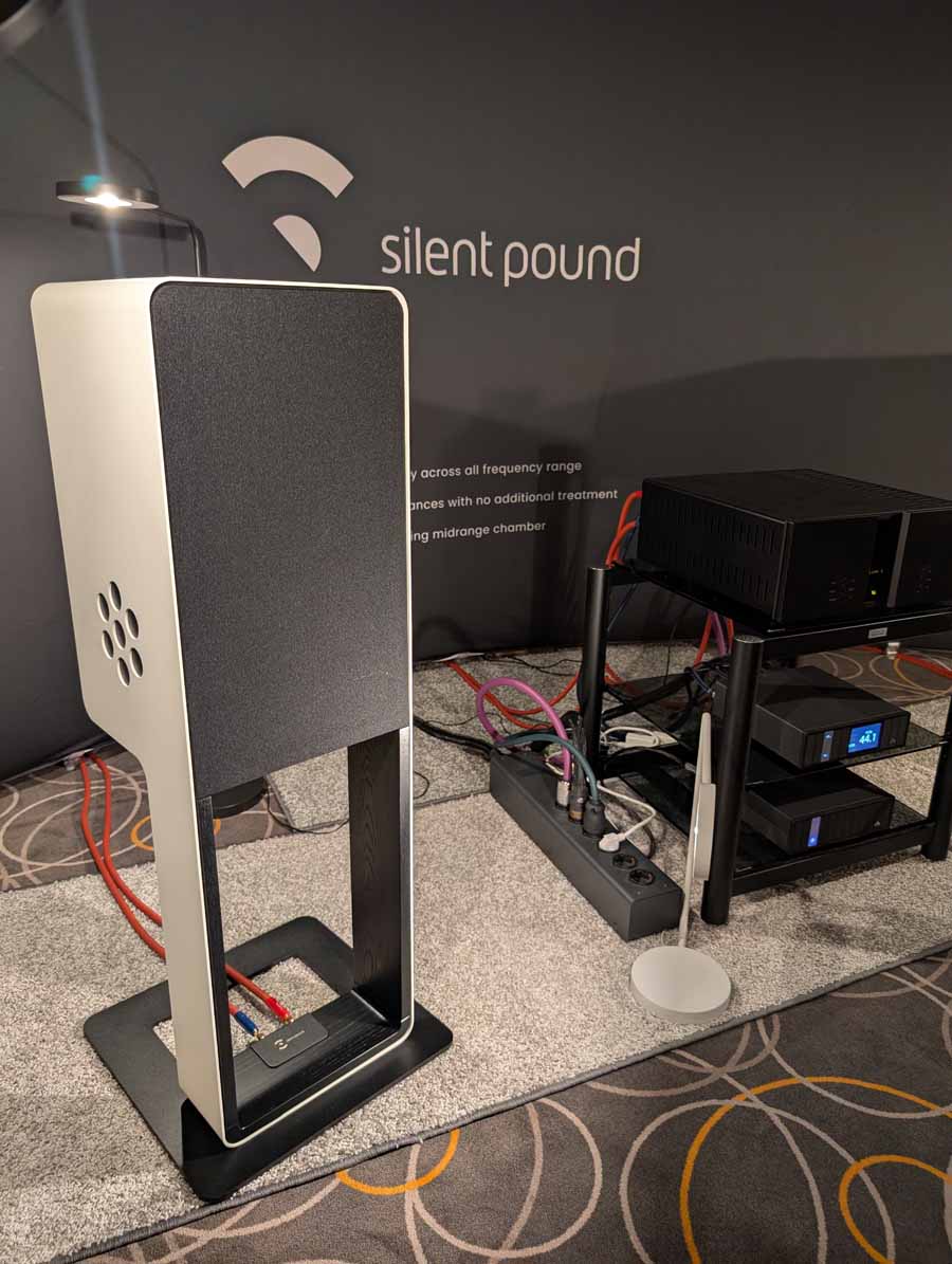 Silent Pound had a production pair of their new Bloom model, I know Stu is running a pair in at the moment and I’m looking forward to reading his thoughts on them. In this system, they sounded fantastic, the design is beautiful, and they pack a lot of dynamic punch for their size. They were paired with a Vitus audio integrated amp and had no troubles filling this room with sound. Silent pound cleverly set up the demo space with listening chairs in line with the sweet spot, rather than across the room, giving listeners a much better experience. I think one of my main takeaways from this room is that style and substance can mix, and that these are effortlessly natural sounding speakers.