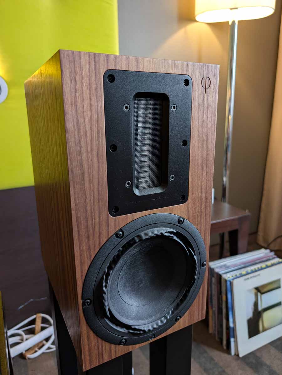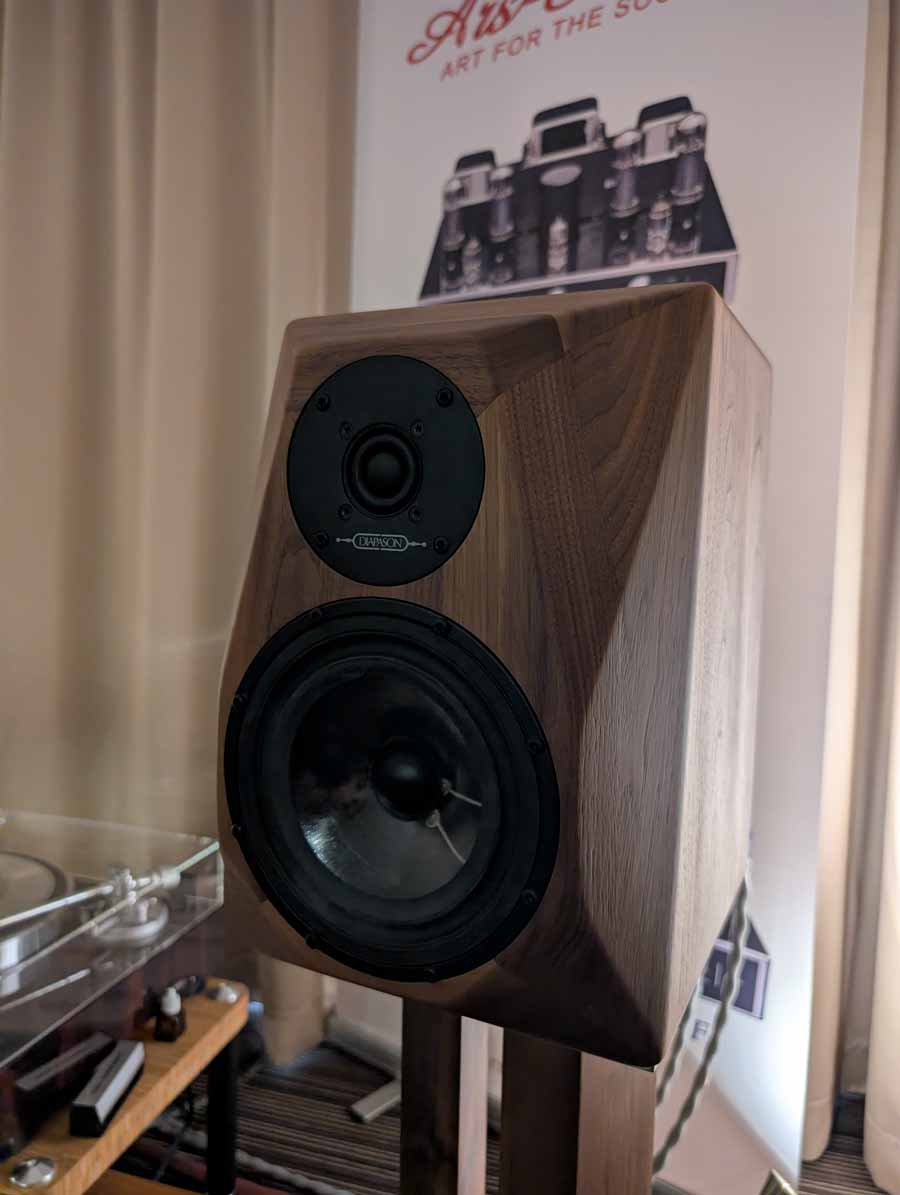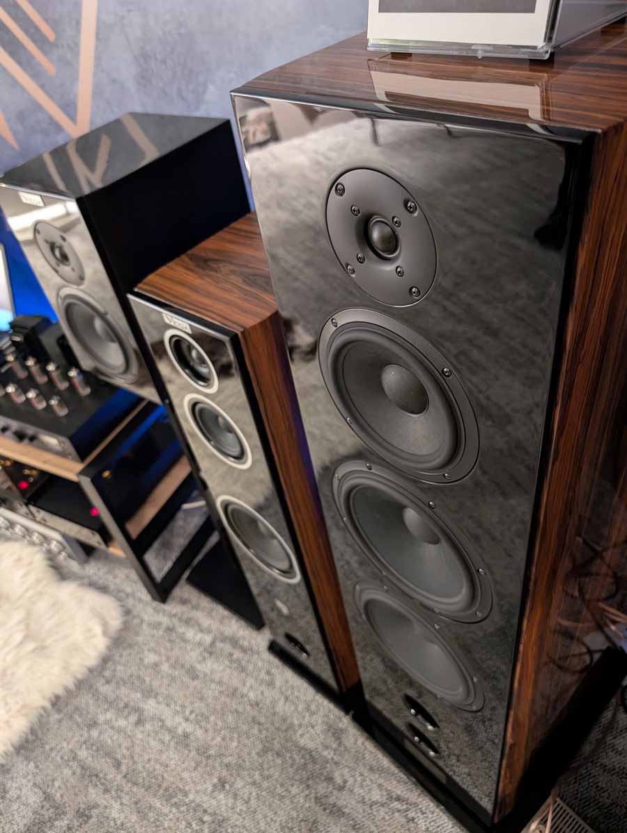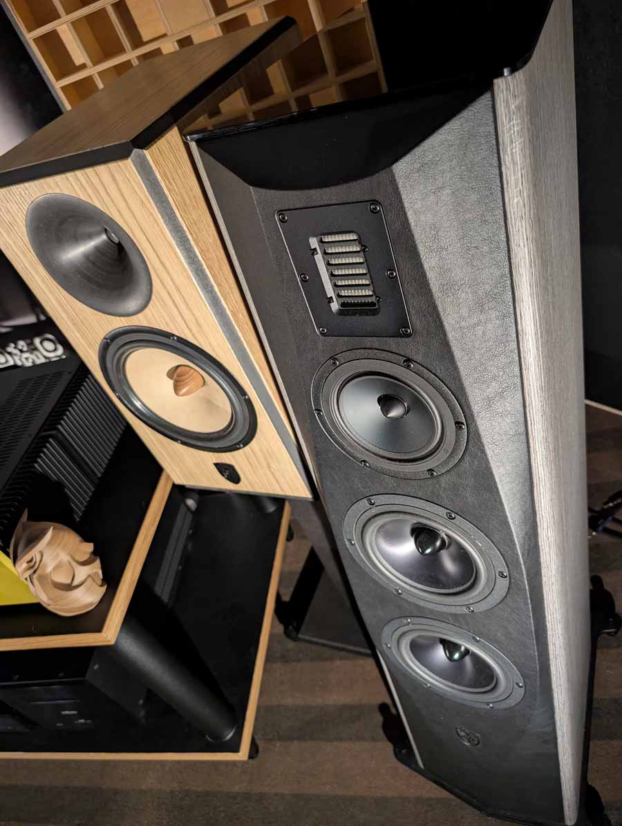 OePhi had their Immanece 2, paired with the excellent Evolution line from Doshi, including the Line pre-amplifier and Stereo power amplifier and a Tentogra turntable. These speakers have quite a large ribbon for the mid/high and use custom purify ushindi drivers. These are fantastic, great depth to the soundstage and impressive dynamics. These sound big, and the clarity on display here was truly superb – these can be cranked to deafening volumes without falling apart and have super low distortion.