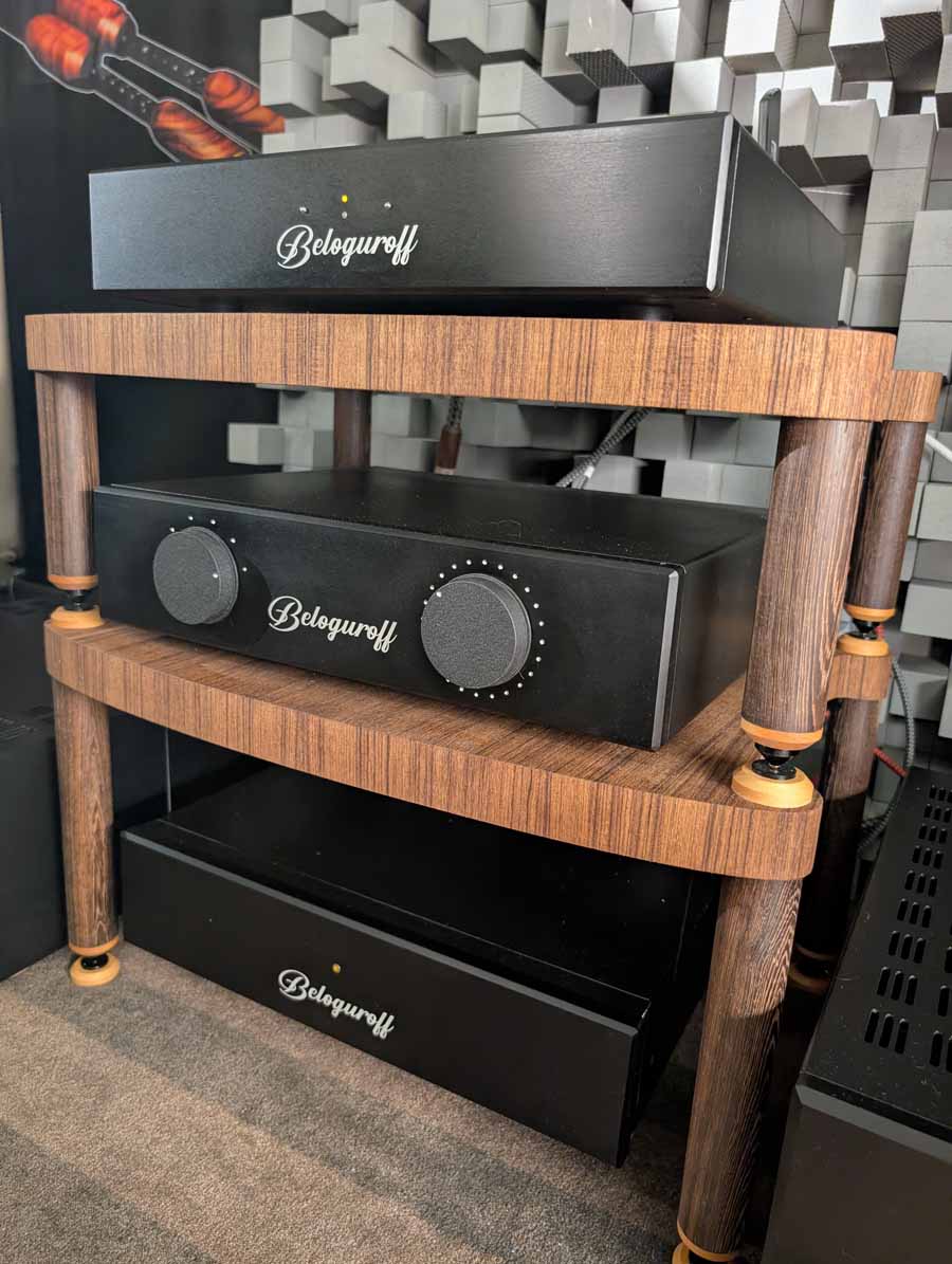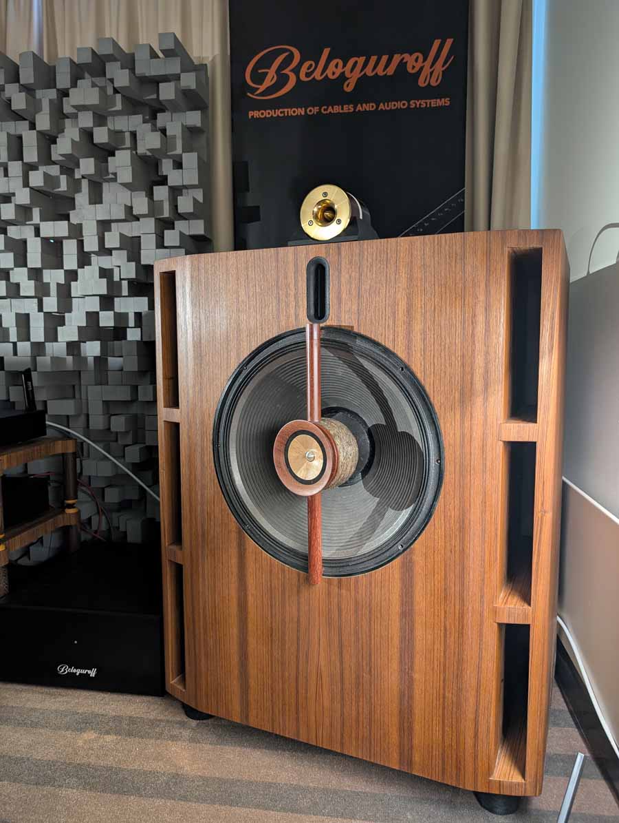 Beloguroff showed off a range of new products including speakers built around modified JBL drivers in ONKEN-type enclosures, a new entry level range of cables, and a new in-house streamer. An interesting setup, that was incredibly natural sounding.