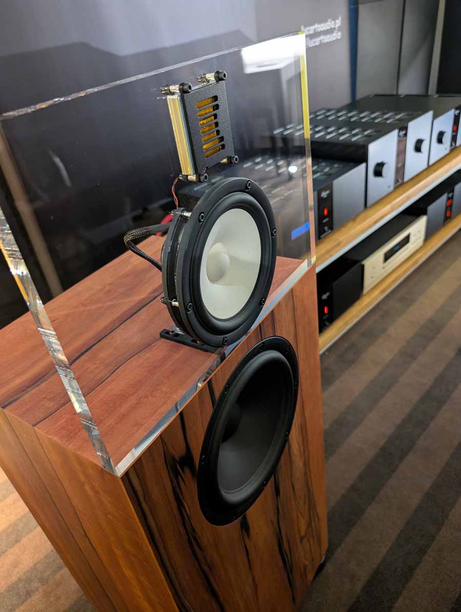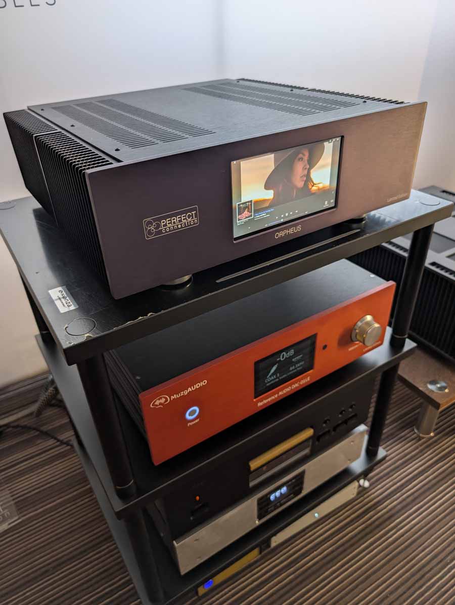 BonaWatt showed off the latest iteration of their Triton hybrid integrated amplifier with modular expansion cards – ensuring this amp is fairly future-proof. Two new cards have also been released, one with a DAC on it, the other being an MM/MC phono stage developed in collaboration with MuzgAUDIO. In the demo system they had a BennyAudio turntable alongside OePhi speakers, and OePhi cabling. These OePhi speakers are using the popular Purifi Ushindi drivers and they sound brilliant, they were playing a popular track I’m Free by Symbolico, and they handled it with ease. Tons of detail and clarity mixed with big, punchy bass – what’s not to love.