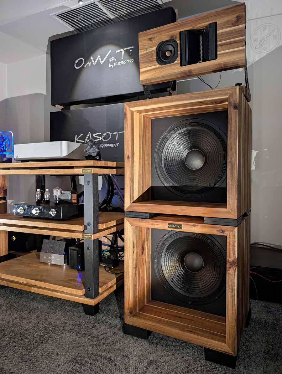Kasoto make a wide range of audio furniture, and these were on display in this room, they also make a pair of open baffle speakers and the latest version OnWaTi BF were on demo in this room. Found sound on the other hand make DACs, Streamers, and amplifiers – mostly with tubes. In this room they had their Davio line, with the Plus and Elite DACs on demo, as well as Azure which features DSD playback capability due to the latest-generation DAC platform. Impressive system in this room, and one that sounded good too, with plenty of body, and space.